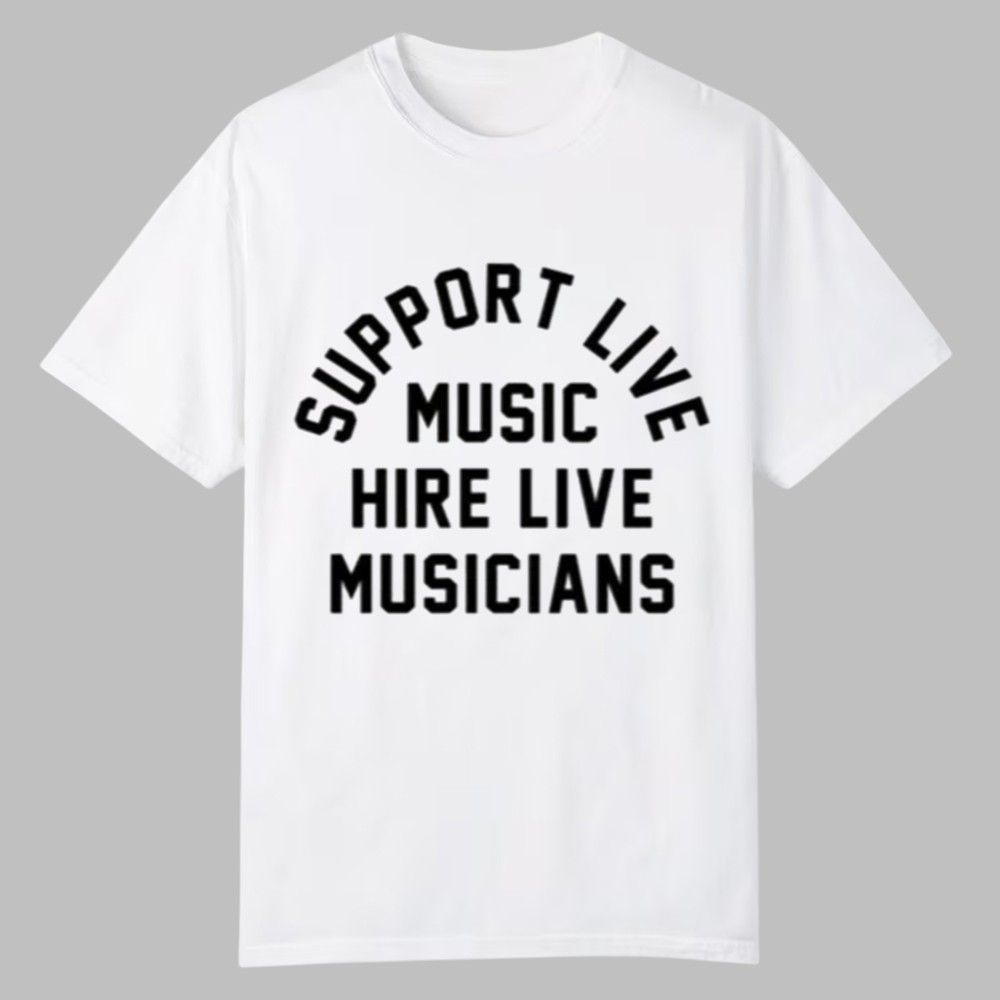 In a world that’s becoming increasingly digital, the raw, human connection of live music is more important than ever. By choosing this shirt, you are doing more than updating your wardrobe—you are investing in a culture, supporting artists’ livelihoods, and promoting the venues that give them a stage. Stand with the creators, the performers, and the fans. Order your “Support Live Music Hire Live Musicians” shirt today and wear your support proudly for all to see!