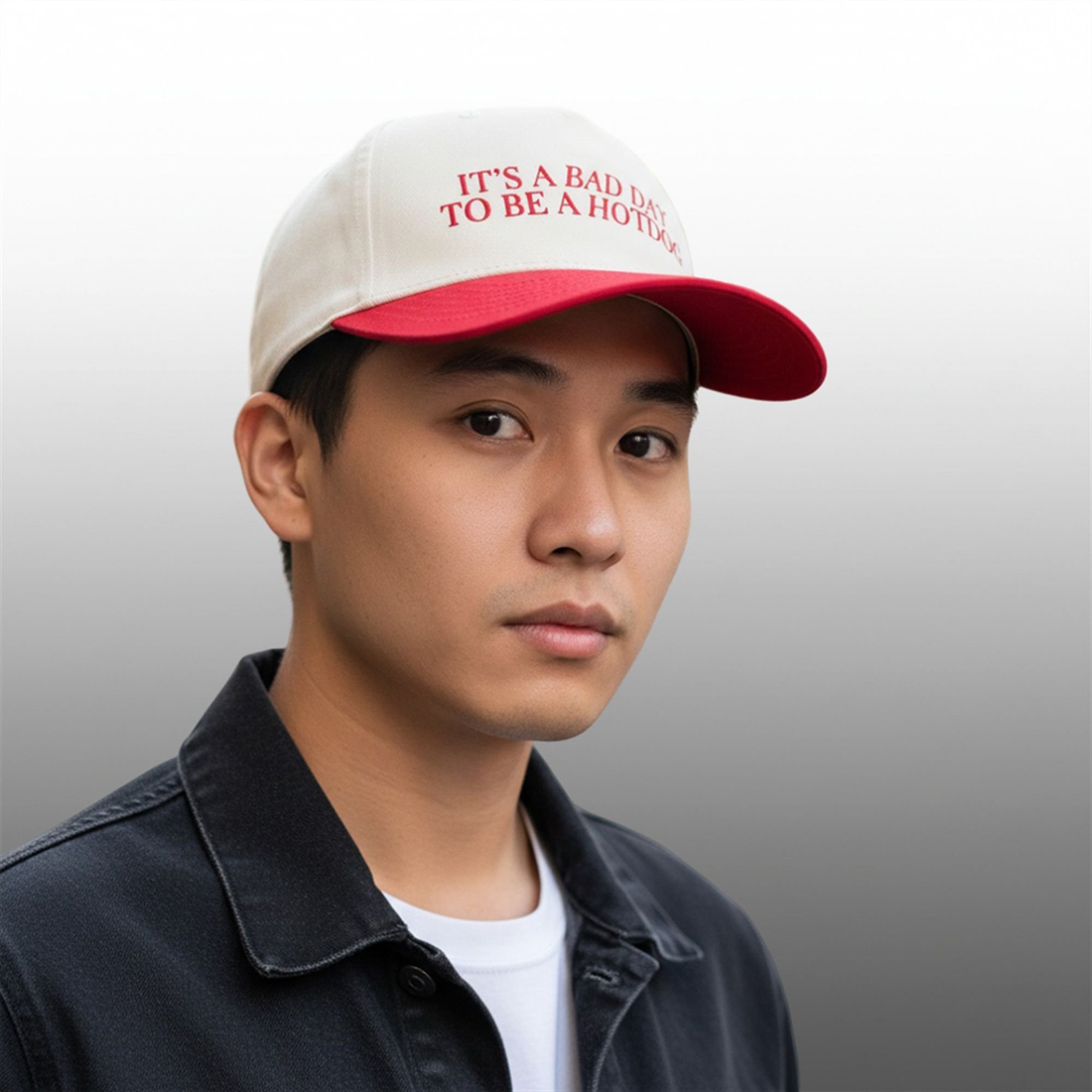It’s the Taylor Lewan It’s A Bad Day To Be A Hotdog Hat that launched a thousand DMs. Seen on the head of the man, the myth, the legend himself—Taylor Lewan—this cap is your ticket into one of the biggest inside jokes in sports and podcasting. The “IT’S A BAD DAY TO BE A HOTDOG” text is , raised red that pops against the light background. The hat perfectly embodies the irreverent, high-energy, and hilarious spirit of the “Bussin’ With The Boys” podcast.