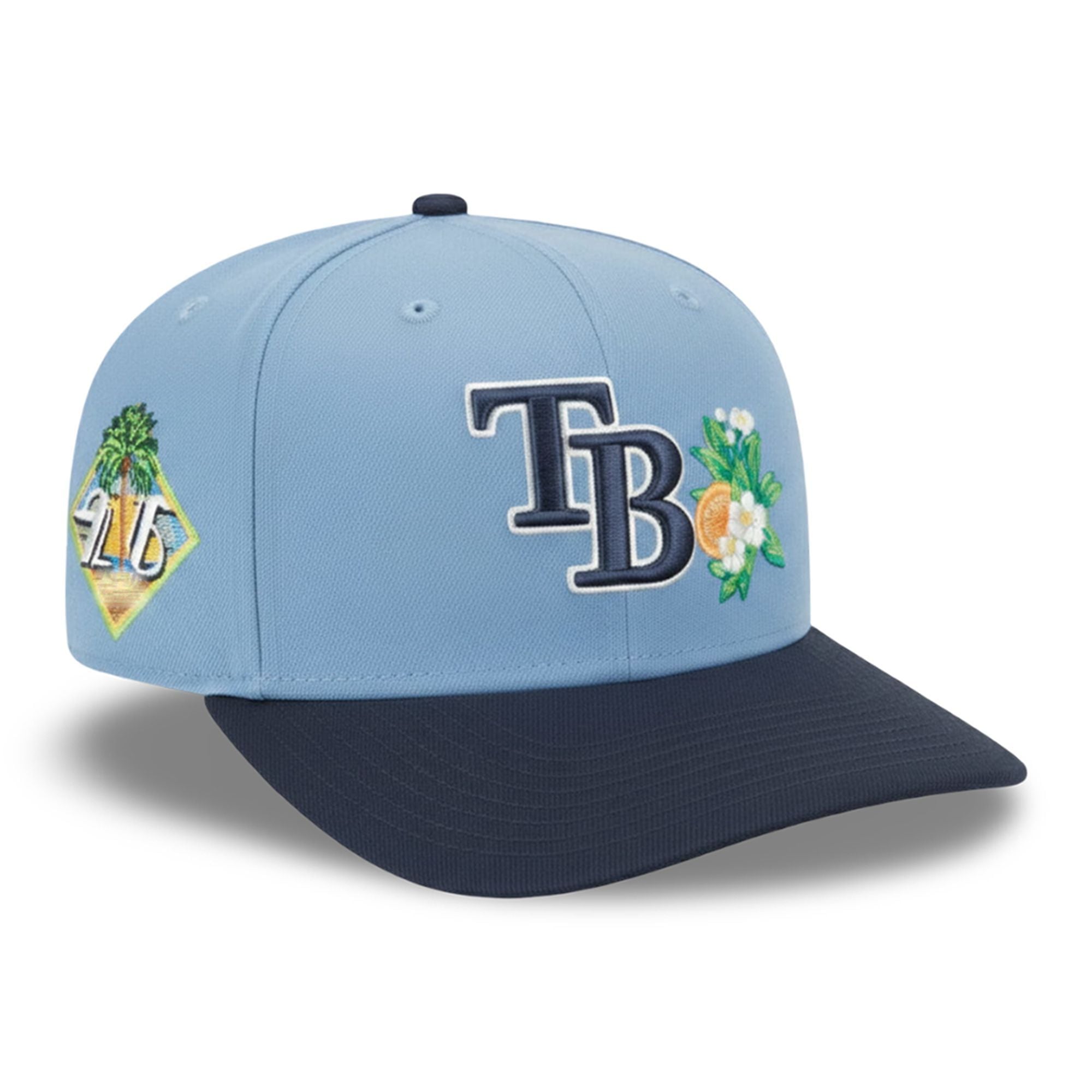 The 2026 Spring Training collection represents a bold aesthetic shift for the Tampa Bay Rays, leaning heavily into the “Floridiana” vibe that defines the Grapefruit League. This hat is the centerpiece of that collection. It combines the team’s classic navy identity with a soft, sun-washed powder blue that evokes clear skies over the Gulf Coast.