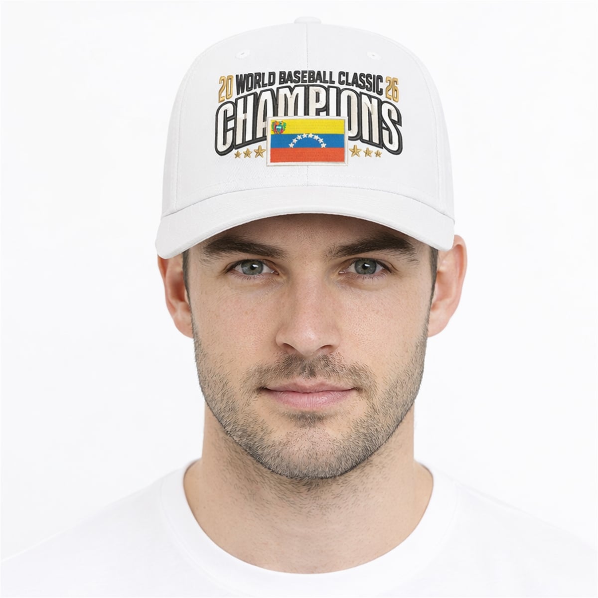 The hat is a visual masterpiece that boldly declares sporting supremacy. Set against a crisp, pristine white background, the front profile is dominated by the striking “20 WORLD BASEBALL CLASSIC 26 CHAMPIONS” typography. At the heart of this bold text sits the vibrant Venezuelan flag, its iconic yellow, blue, and red colors radiating national pride, accented by golden stars that symbolize the championship achievement. Turning the cap around reveals the universally recognized, multi-colored World Baseball Classic logo seamlessly integrated into the back. The adjustable snapback closure ensures a versatile fit, making the design as universally accessible as the sport itself.