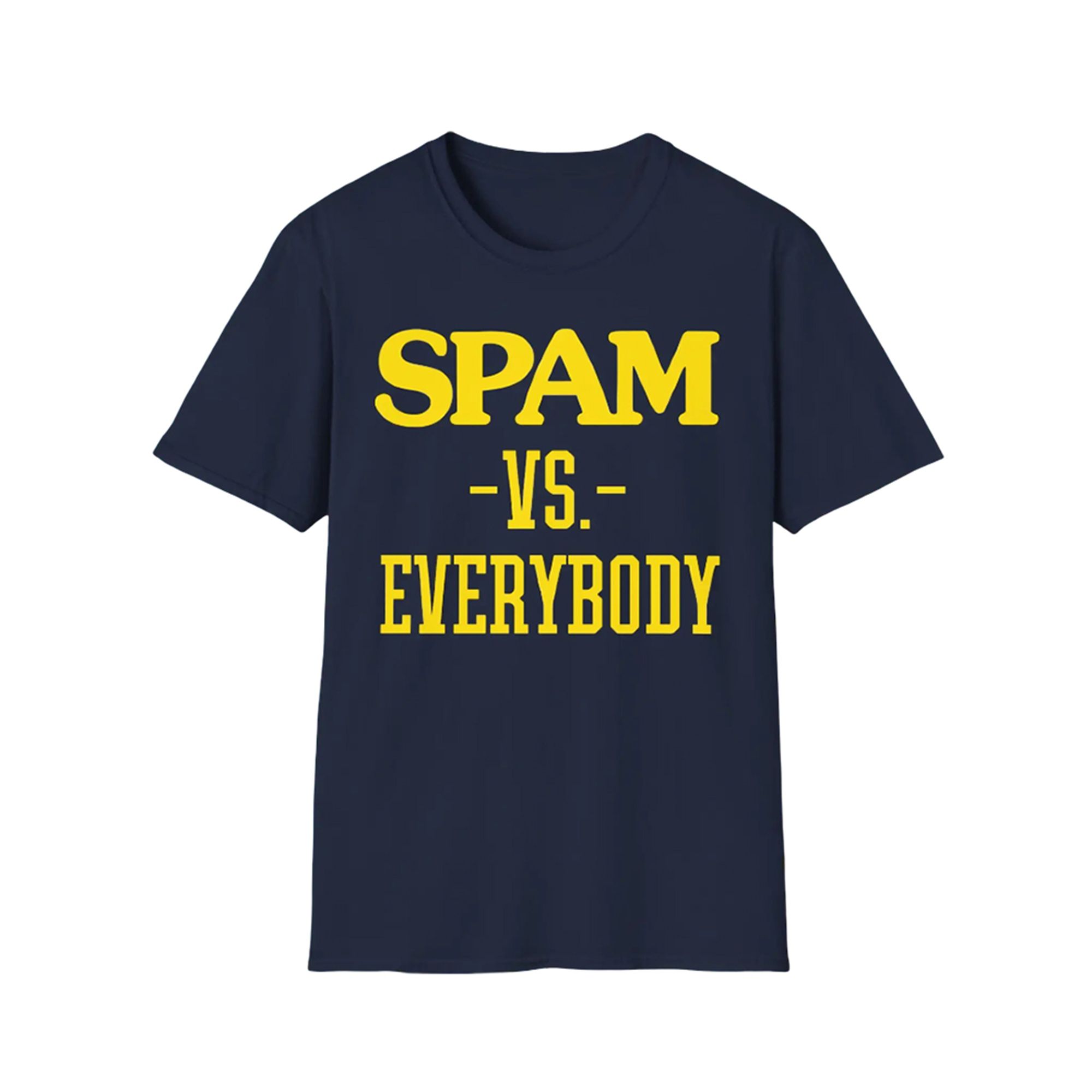 In the world of modern sports fashion, athletes are the new trendsetters. This shirt captures that shift, offering fans a way to connect with the personality of the player, not just his jersey number. It represents a laid-back confidence—a statement that says you can dominate on the field while keeping your roots and your sense of humor front and center off the field. Spam VS Everybody – It is bold, legible, and instantly recognizable to anyone following the trajectory of college football’s biggest stars.