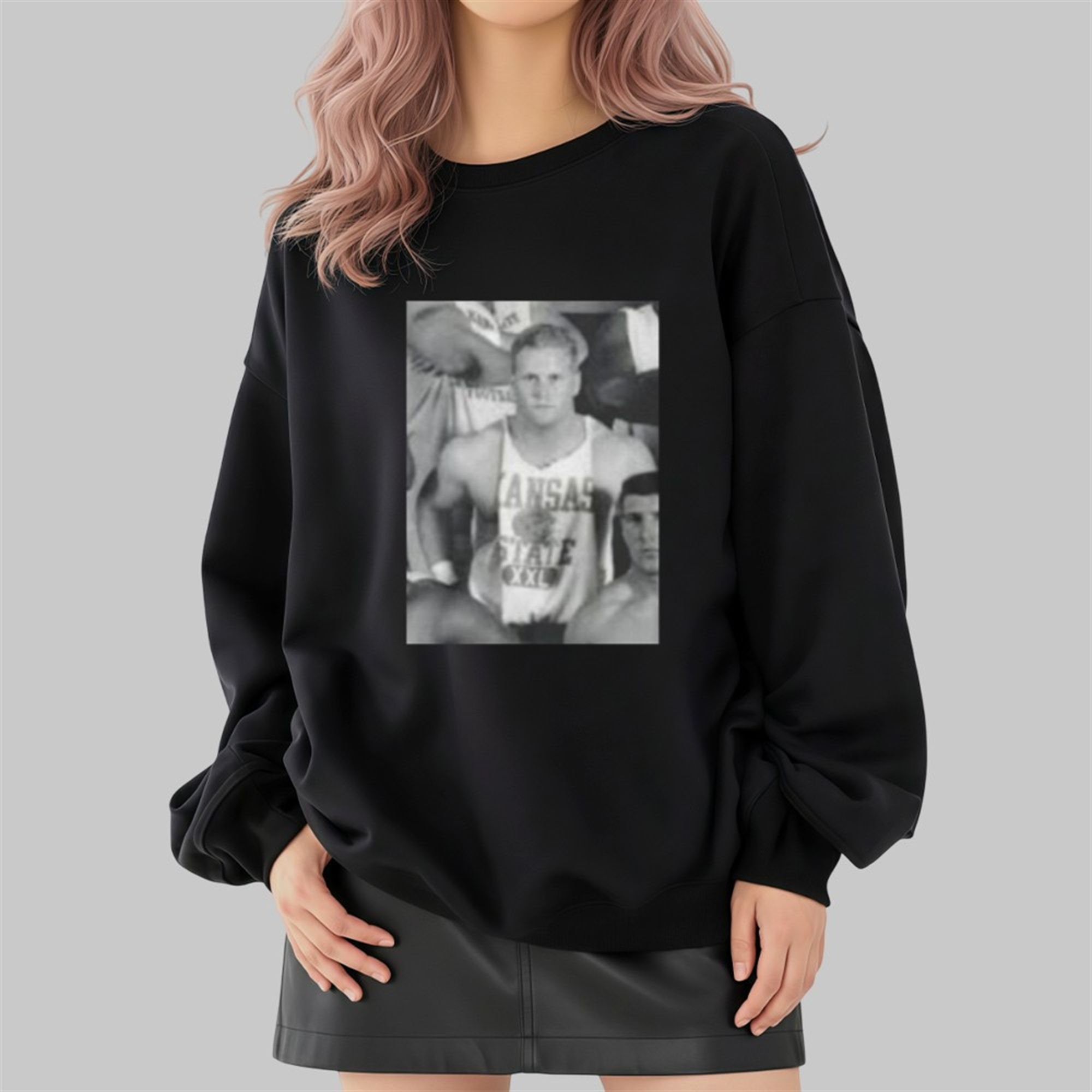 For those who missed the iconic moment, this shirt tells a story of camaraderie. Coach McGuire, known for his passionate leadership, appeared at a press event wearing this tee. The black-and-white image showcases a young, formidable Kirby Hocutt during his time as a standout linebacker for the Kansas State Wildcats in the late 1980s. The playful nod from the head coach to his AD instantly went viral, capturing the unique, tight-knit, and fun-loving culture that defines Texas Tech today.