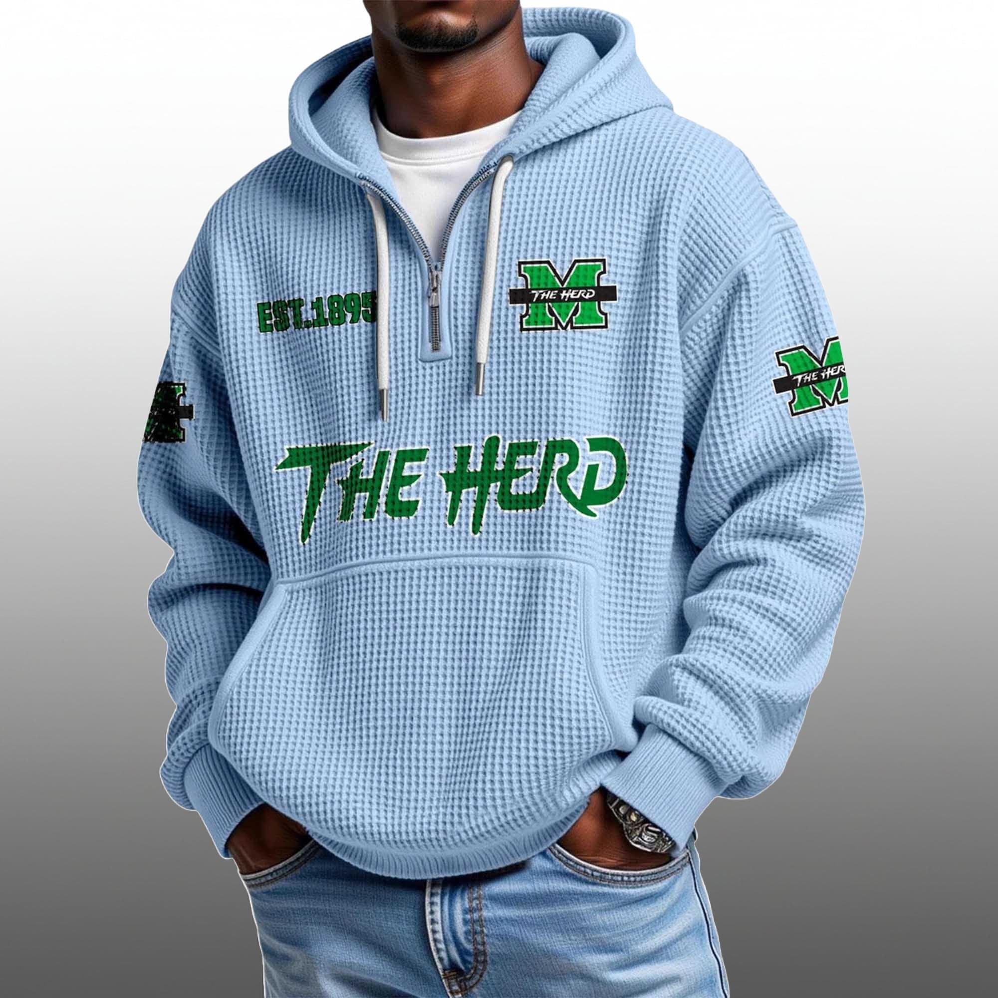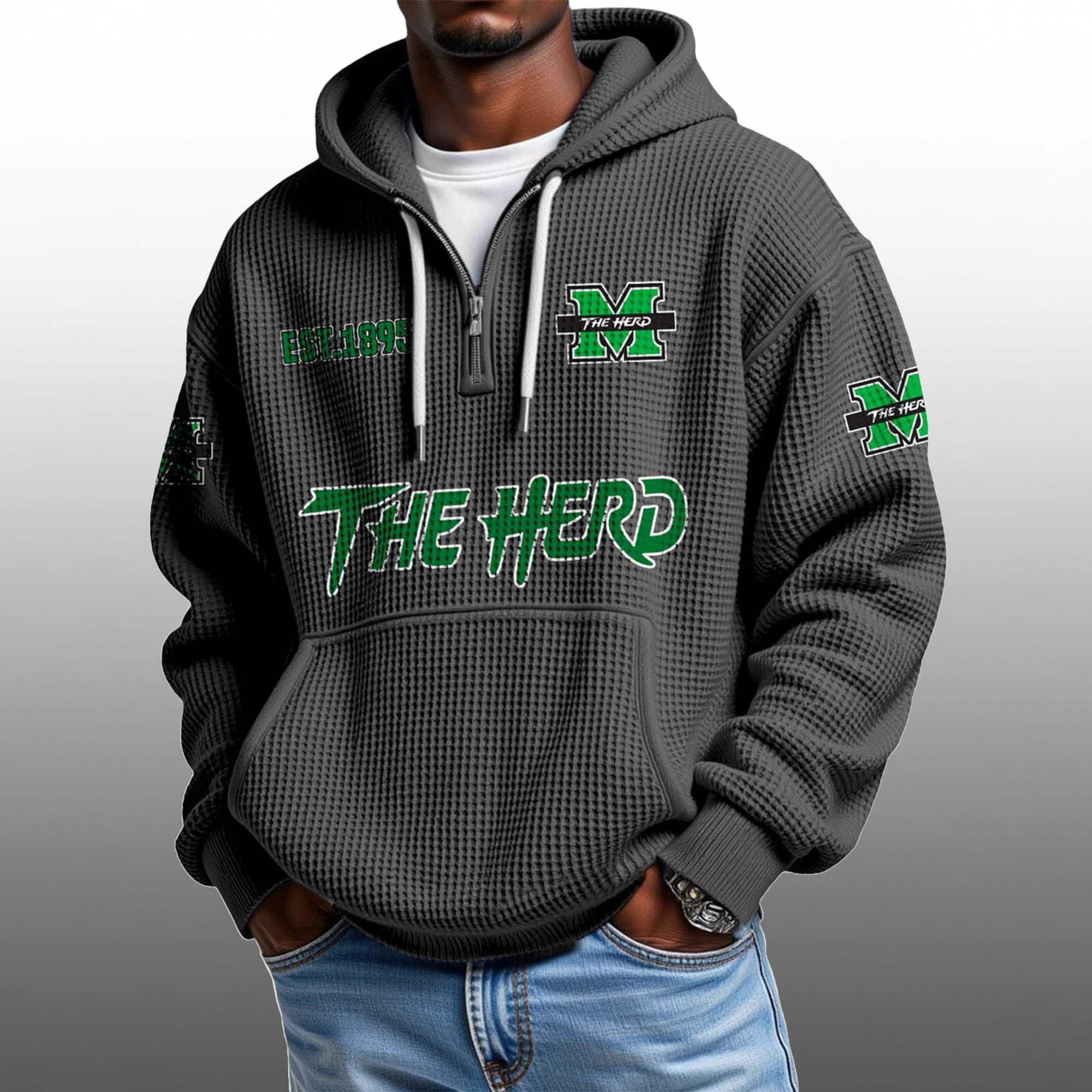 Elevate your gameday rotation with the Marshall Thundering Herd “The Herd” EST 1895 Half-Zip Waffle Hoodie. This isn’t just fan gear; it’s a masterclass in modern athleisure, blending Marshall’s gritty 1895 roots with the top streetwear texture of December 2025: waffle knit.