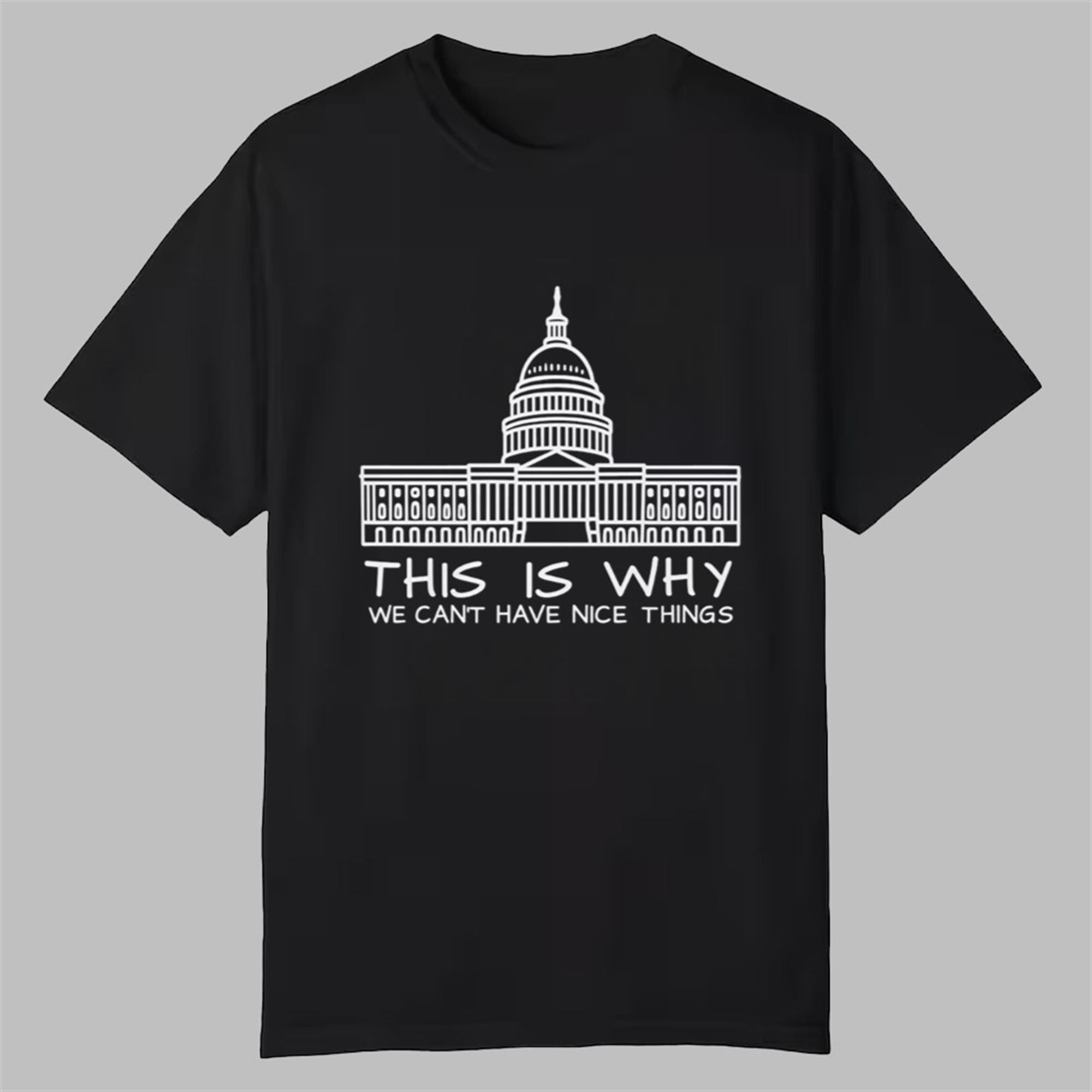 In a world full of loud opinions, this shirt speaks volumes with a simple, knowing sigh. This Is Why We Can’t Have Nice Things Shirt – It’s not just a t-shirt; it’s a mood, a sentiment, and a shared inside joke for anyone who follows the news. The design is brilliantly simple: the iconic dome of the U.S. Capitol Building, a symbol of American democracy and government, rendered in crisp white line art. Directly below it, the punchline: “THIS IS WHY WE CANT HAVE NICE THINGS.”