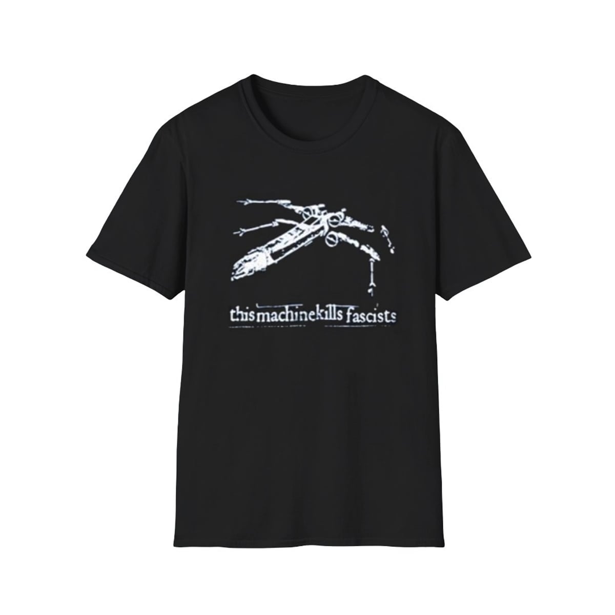 What happens when the ultimate symbol of 1940s folk resistance collides with the most recognizable starfighter in galactic history? You get the This Machine Kills Fascists Shirt—a design sensation that has sparked conversations across the internet. This clever graphic perfectly captures the enduring spirit of rebellion by drawing a direct, thematic line from Woody Guthrie’s acoustic guitar to the fictional fight against the Galactic Empire.