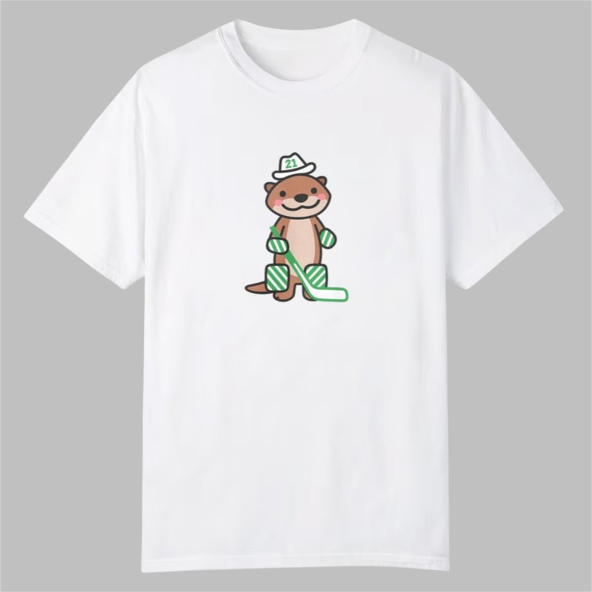 Every true supporter knows that Jake Oettinger is a wall in the net, but his “Otter” nickname has given him a unique identity beloved by all. This t-shirt perfectly captures that playful yet competitive spirit. The design features an adorable brown otter, complete with a hockey stick, pads, and a hat bearing the number 21—a tribute to the era of young stars taking over the league. It’s the perfect blend of cute, clever, and passionate, making it an essential addition to your game-day wardrobe or your everyday casual wear. When you wear this shirt, you’re not just supporting a player; you’re showing you’re part of the community that celebrates the fun side of hockey.