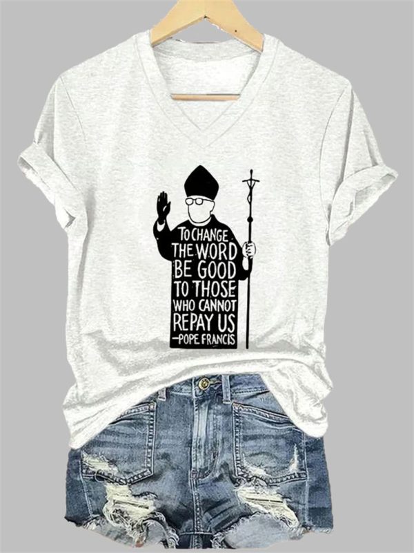 This To Change The Word Be Good To Those Who Cannot Repay Us Print Casual T-Shirt isn’t just another graphic tee; it’s a conversation starter, a declaration of values, and a tribute to a message of profound compassion. The core of this design features the impactful quote attributed to Pope Francis: “To Change The World Be Good To Those Who Cannot Repay Us.” These words encapsulate a powerful call to selfless action, urging us to extend kindness and support without expecting anything in return.