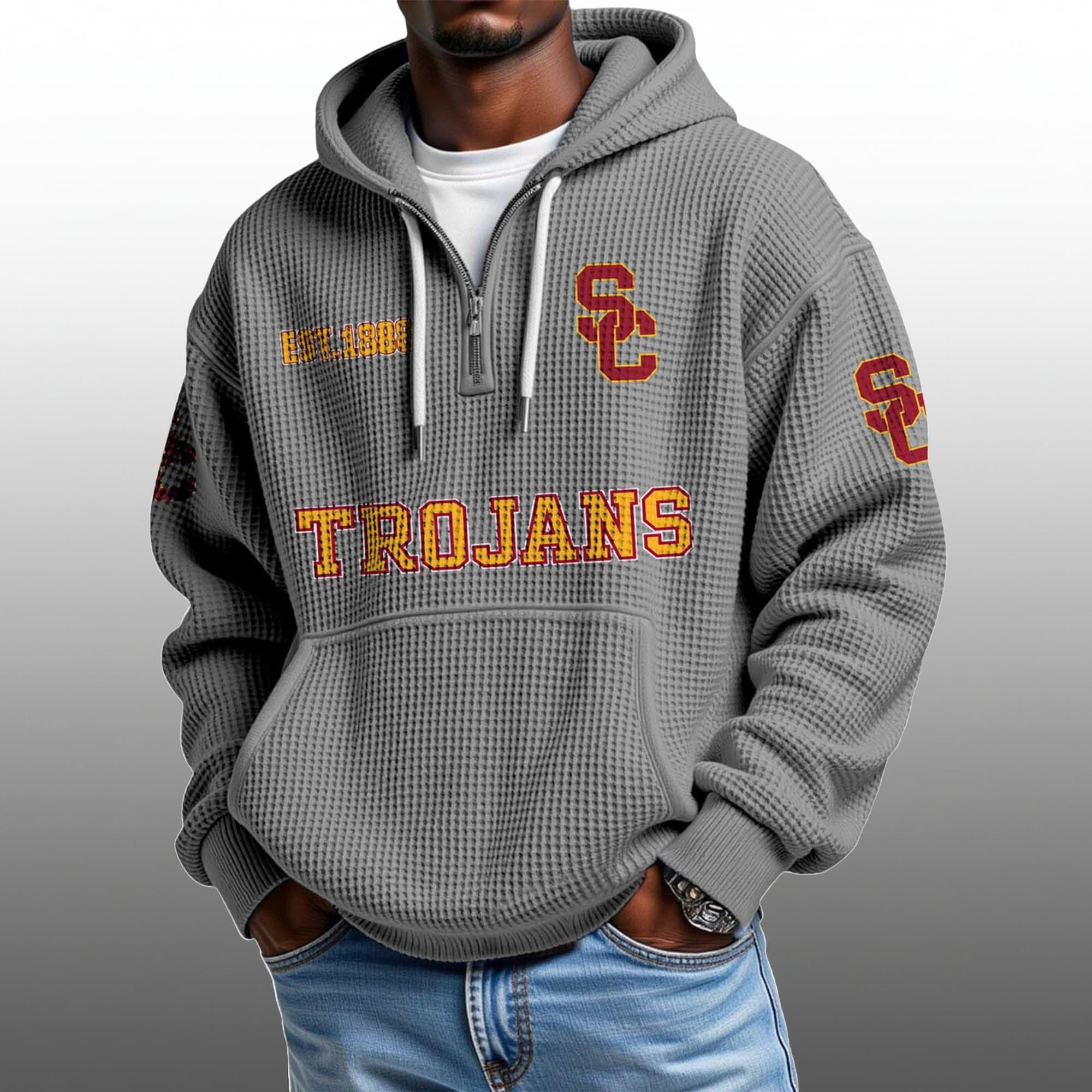 2026 Trojans EST 1886 Half Quarter Zip Waffle Hoodie – Victory in Texture