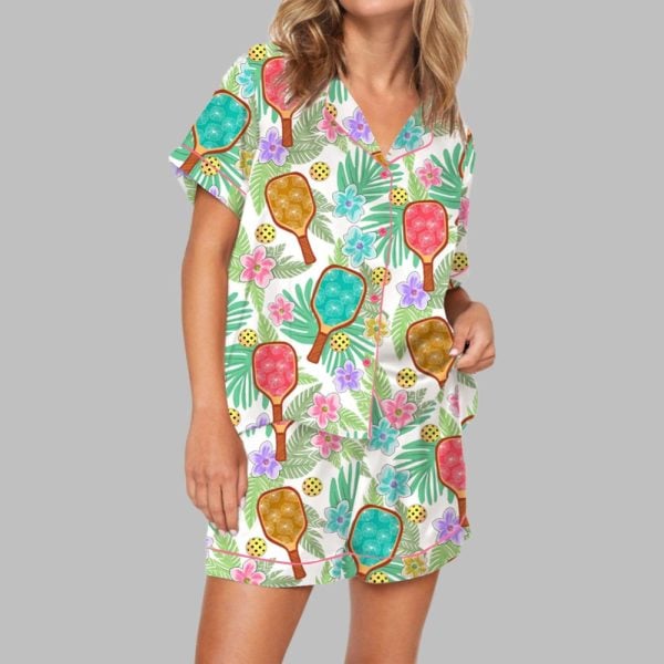 This set is designed for women who are passionate about pickleball and appreciate fun, vibrant, and comfortable loungewear. It’s for the player who dreams of the court even after the game is over, the individual who loves a touch of tropical flair in their wardrobe, and anyone who values stylish sleepwear. Whether you’re a seasoned pro or a casual player, or simply someone who loves unique and cheerful patterns, this pajama set is for you.