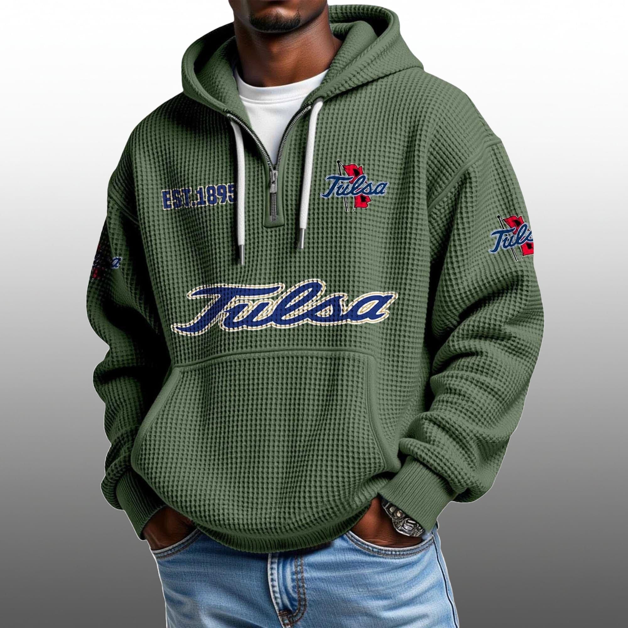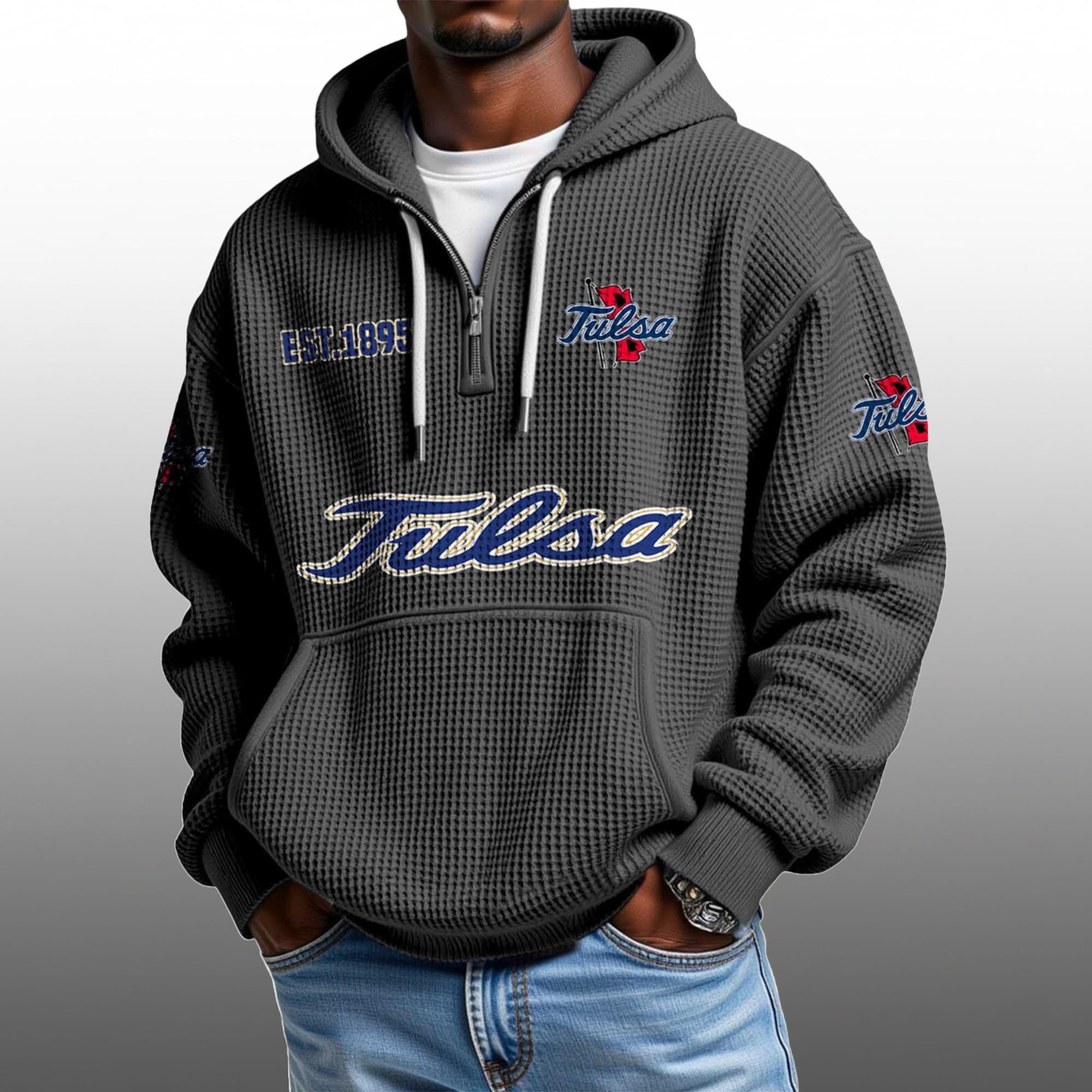 Elevate your cozy season rotation with the Tulsa Heritage 1895 Quarter-Zip Waffle Hoodie, the ultimate fusion of vintage collegiate charm and modern streetwear functionality. Crafted from a premium heavyweight waffle knit, this thermal pullover offers superior warmth without the bulk, making it perfect for layering during the chilly Winter 2025 season.