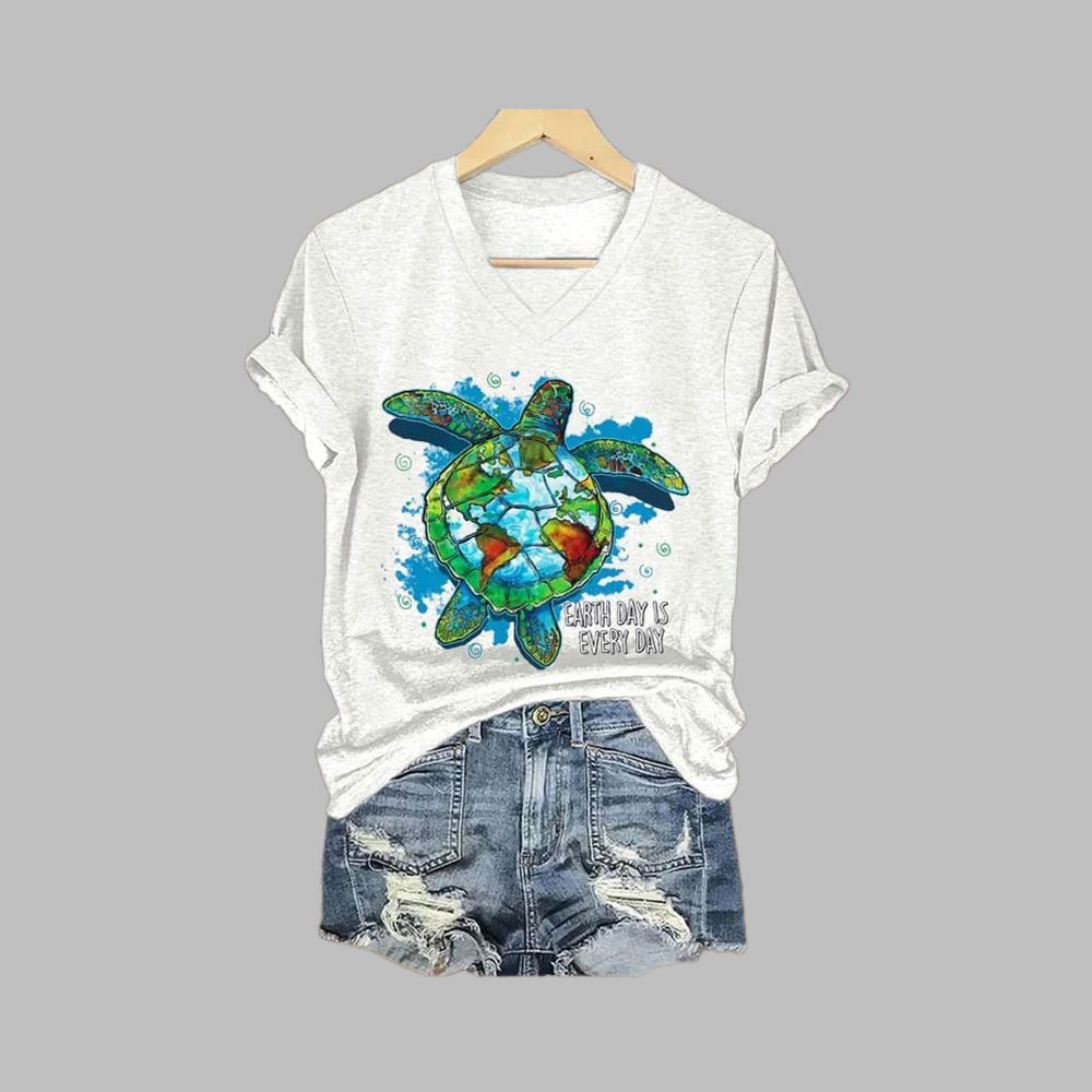 Turtle Earth Day Is Every Day Print V-Neck T-Shirt – Celebrate Our Planet