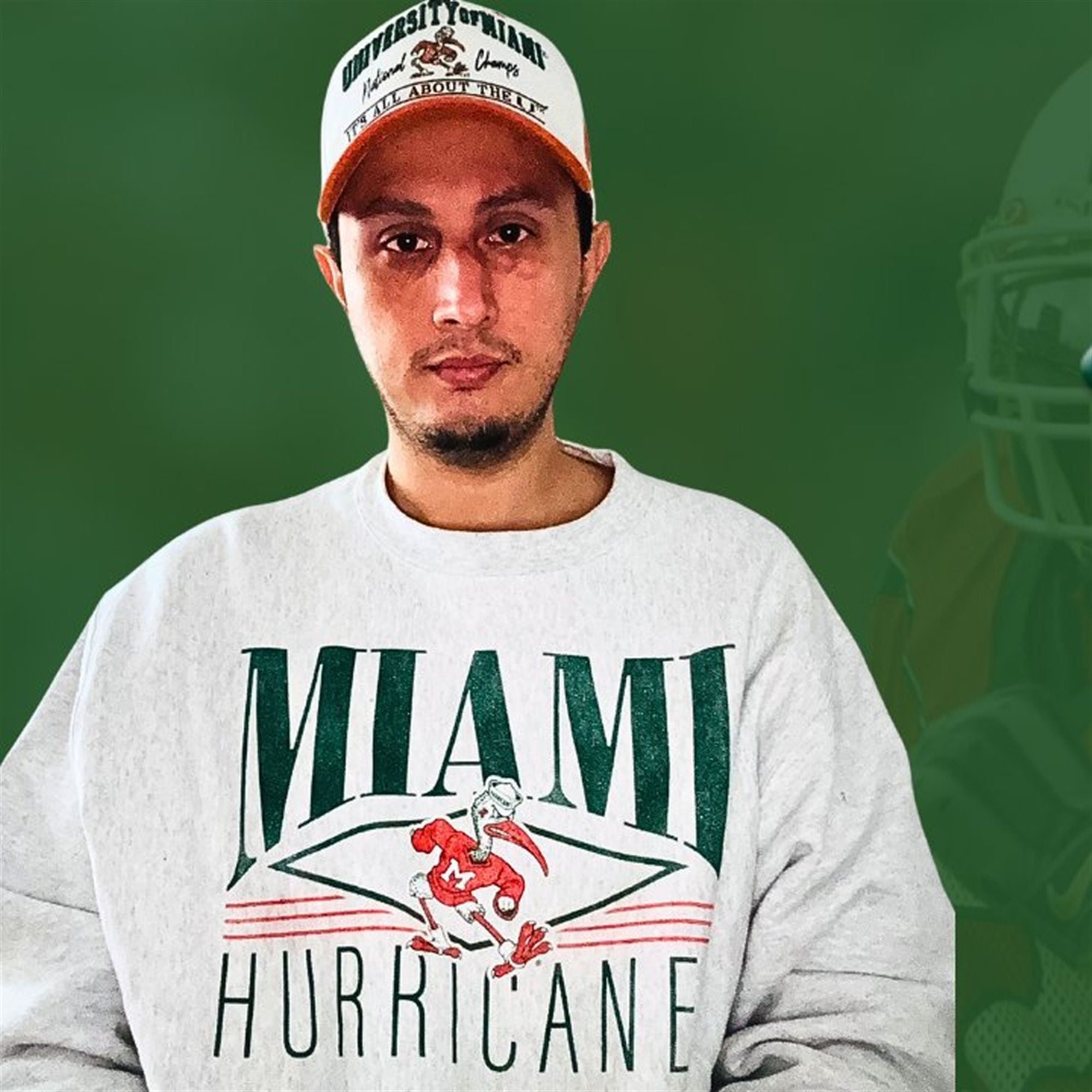 The viral explosion of this look wasn’t just about a piece of clothing; it was about the attitude it projected. When EJ Holland appeared wearing the vintage Miami sweatshirt paired with this National Champs hat, it symbolized a “return to glory” narrative that fans were desperate for. The internet latched onto the image because it perfectly captured the swagger of the 90s—bold, unapologetic, and dripping with championship confidence—standing out sharply against the polished, corporate look of modern sports reporting.