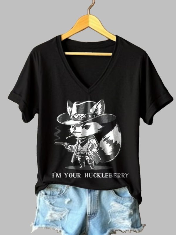 V-Neck I’m Your Huckleberry Western Print T-Shirt – Unleash Your Inner Outlaw