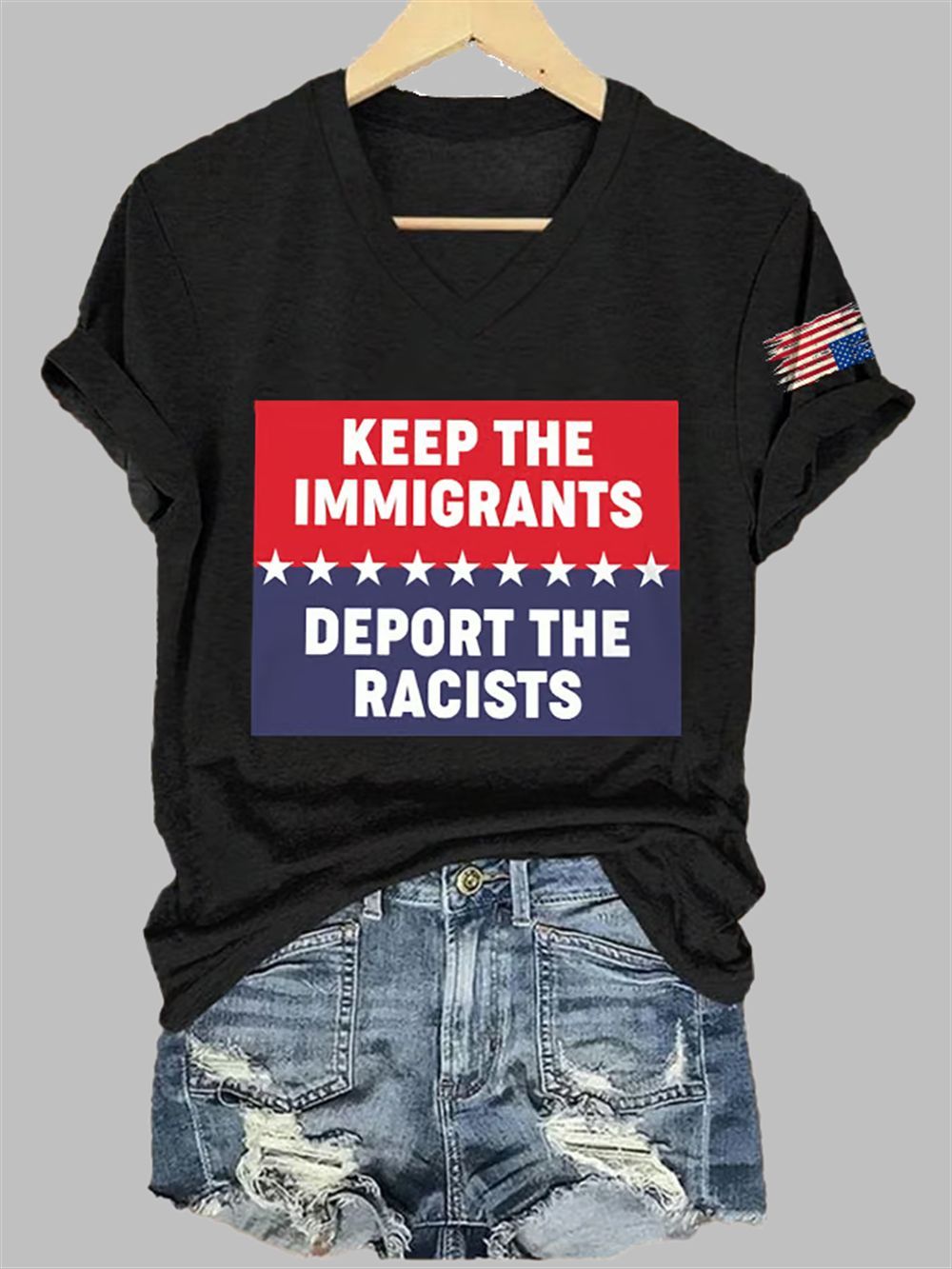 V-Neck Keep The Immigrants Deport The Racists Print T-Shirt – Make a Statement
