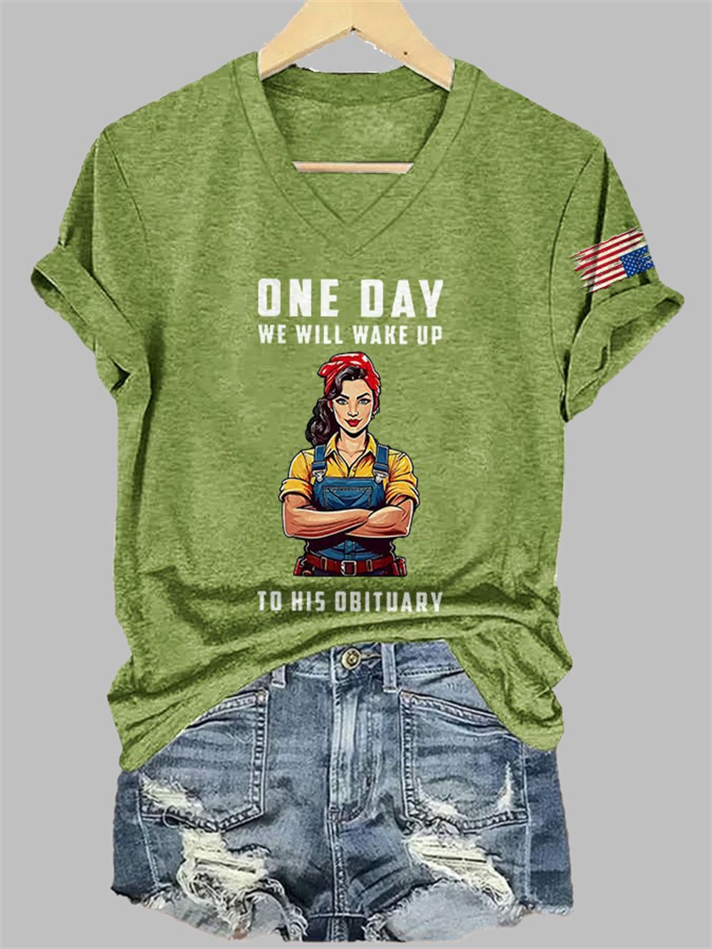 V-Neck One Day We Will Wake Up To His Obituary Print T-Shirt – Make a Statement