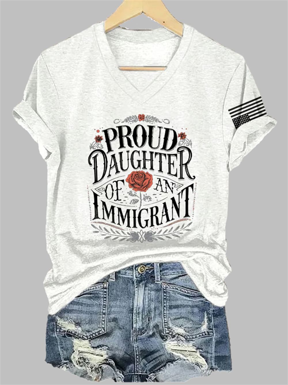 V-Neck Proud Daughter Of An Immigrant Print T-Shirt