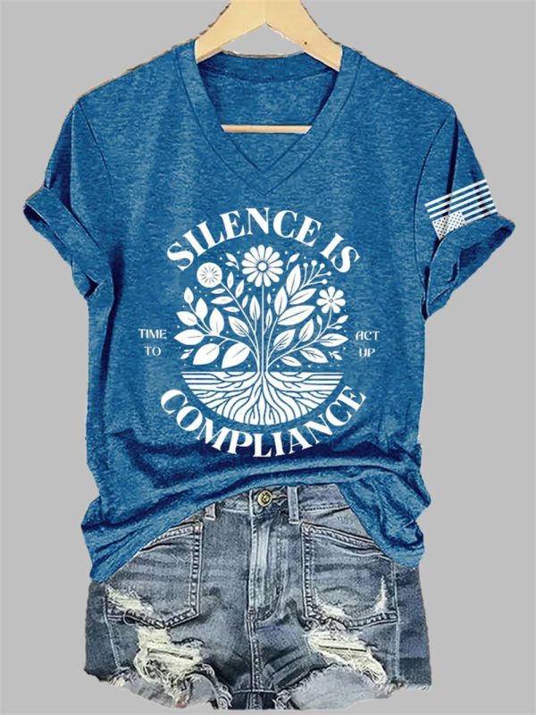 V-Neck Silence Is Compliance Time To Act Up Print T-Shirt – Make a Bold Statement