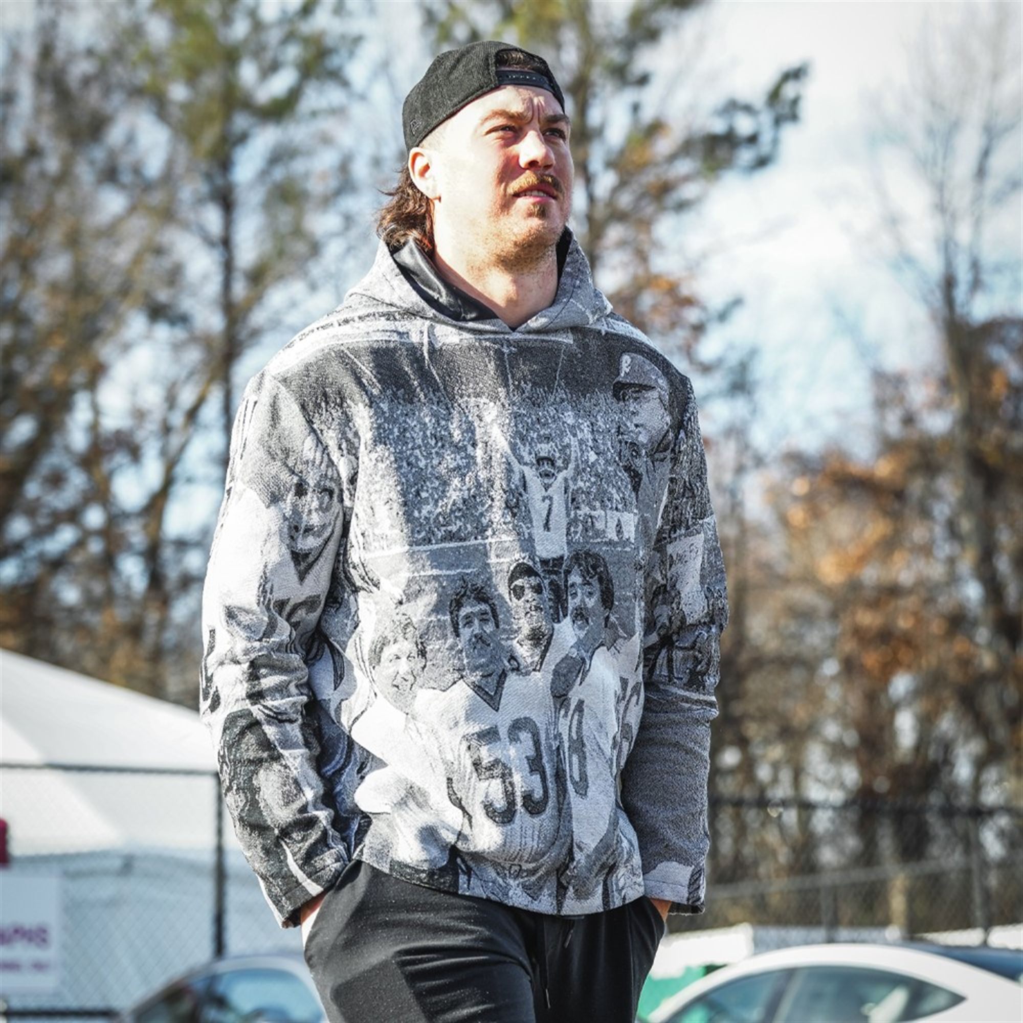 When #87 John Bates arrived at the facility sporting this unique piece, social media lit up. Fans immediately recognized the difference in quality and design. This isn’t your average team store sweatshirt; it is a statement piece. By wearing this hoodie, you aren’t just supporting the current roster; you are bridging the gap between today’s stars and the icons of the past, joining an club of fans who value unique, player-approved fashion.