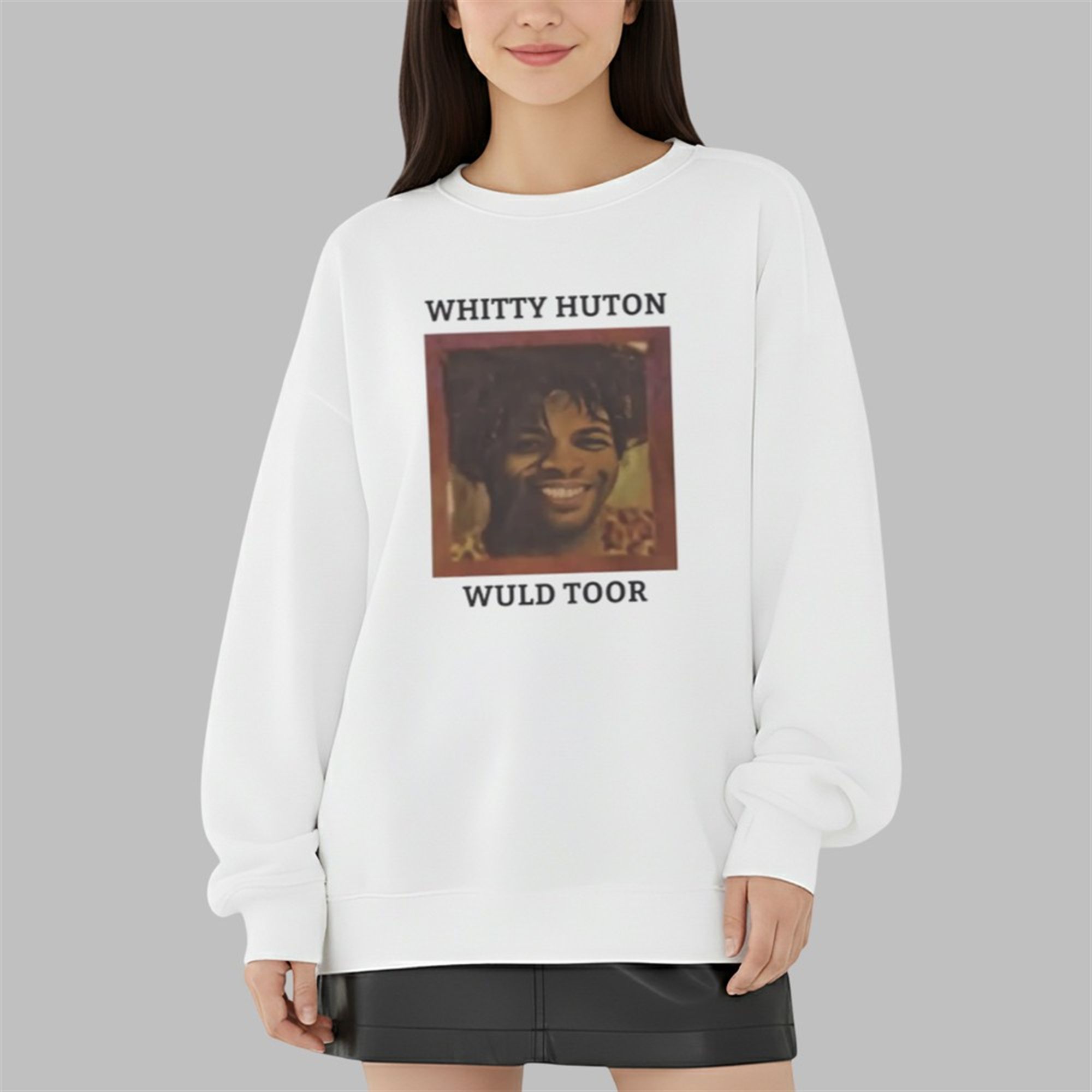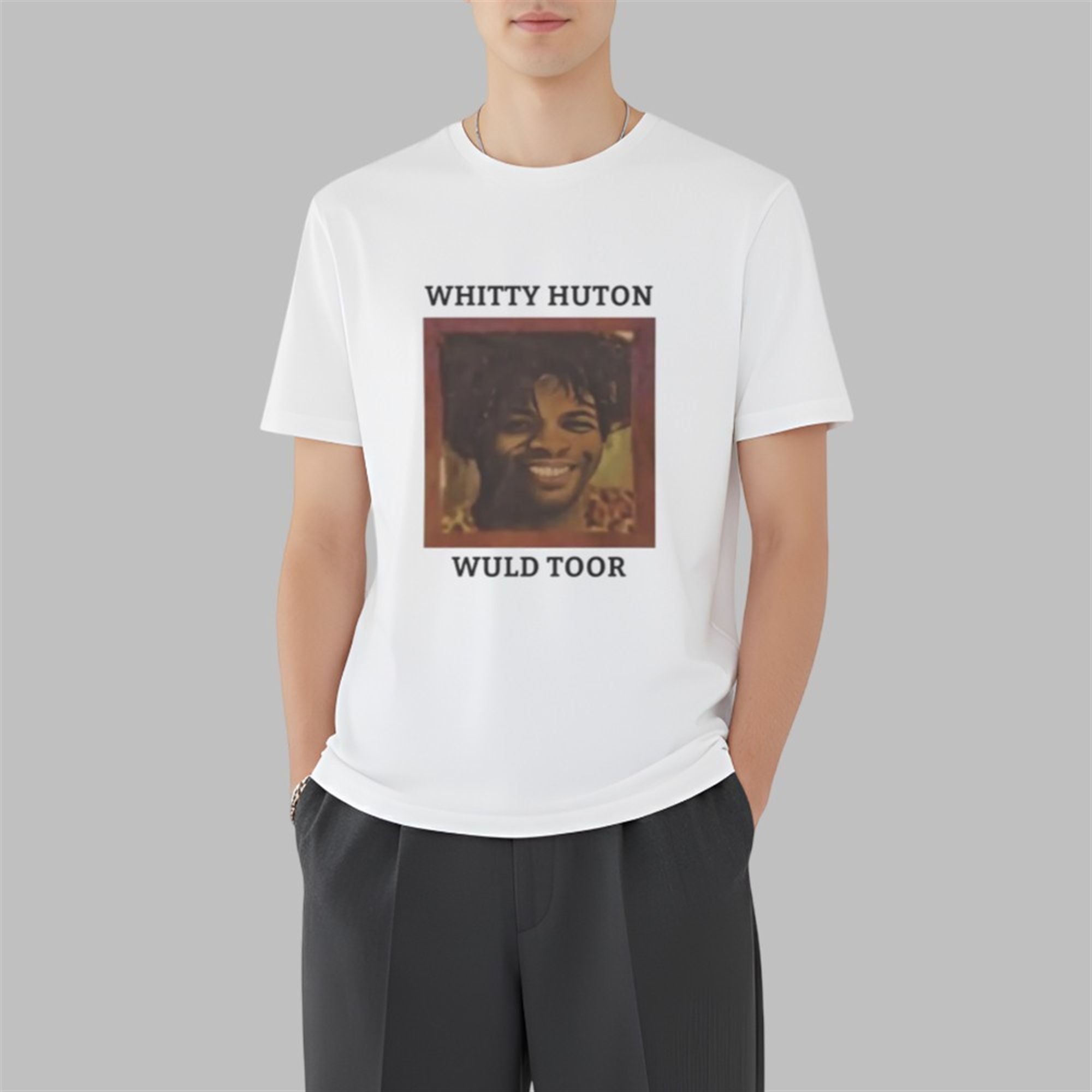 In an era where fashion is often taken too seriously, the Whitty Huton Wuld Toor Shirt arrives to break the rules. This t-shirt features the legendary internet meme graphic: a distorted, seemingly “deep-fried” image of the iconic singer, framed by the intentionally misspelled text “WHITTY HUTON” and “WULD TOOR.”