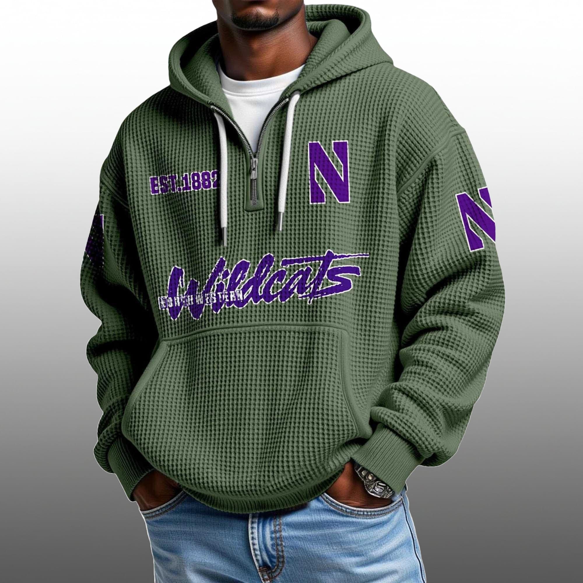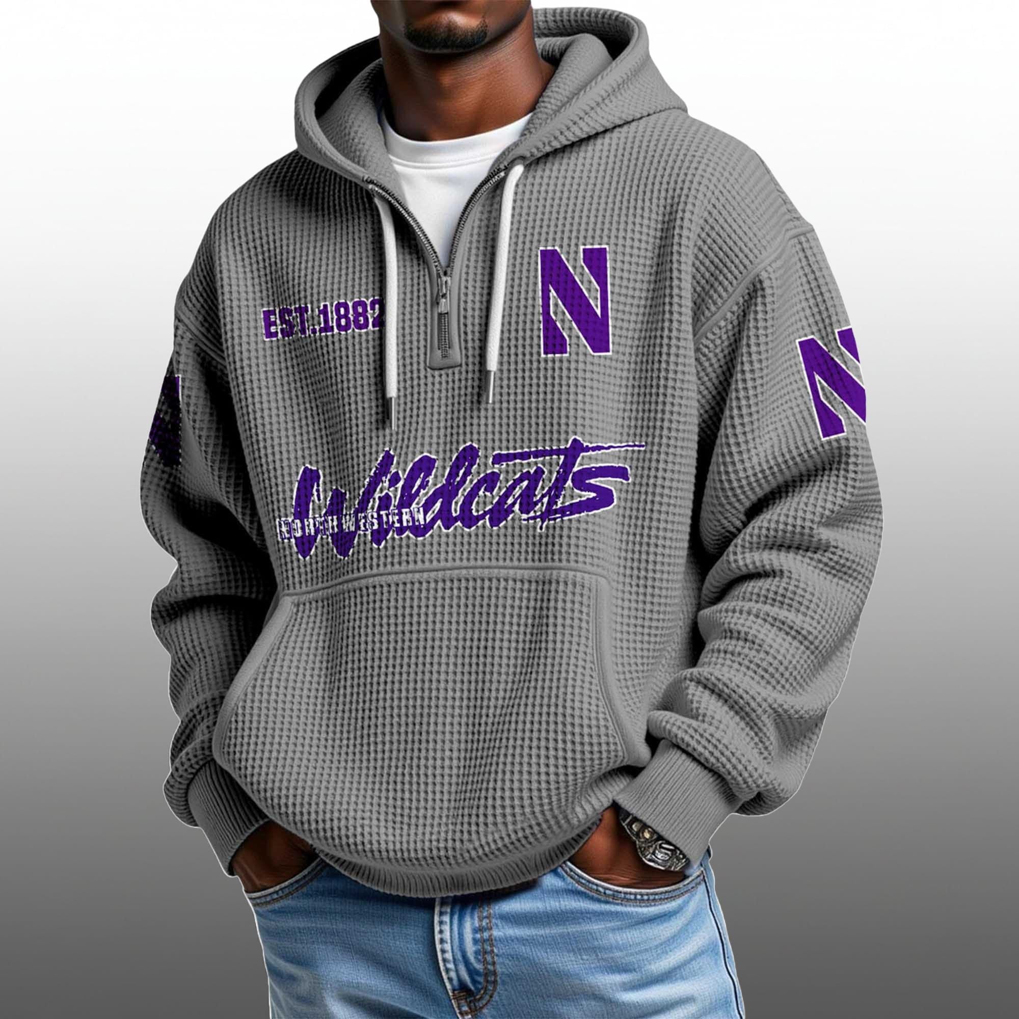 2026 Northwestern Wildcats Football EST 1882 Quarter Zip Waffle Hoodie – A New Era of Collegiate Style