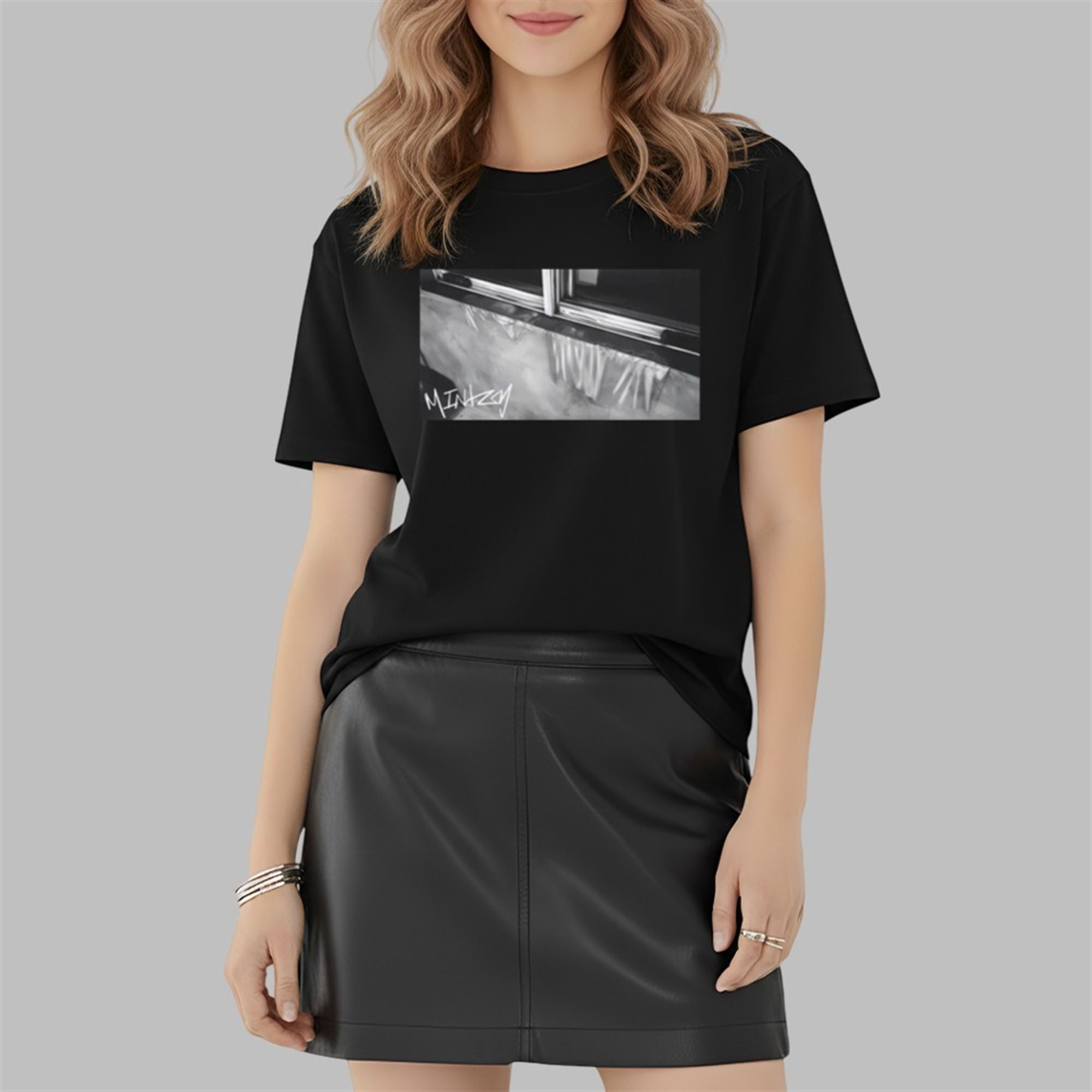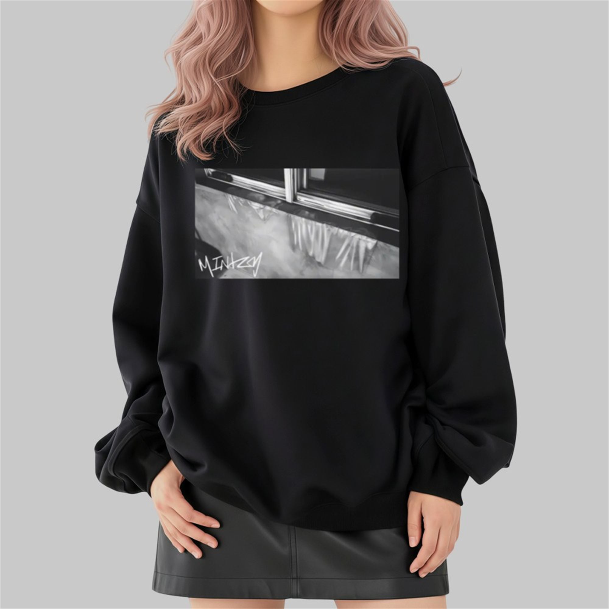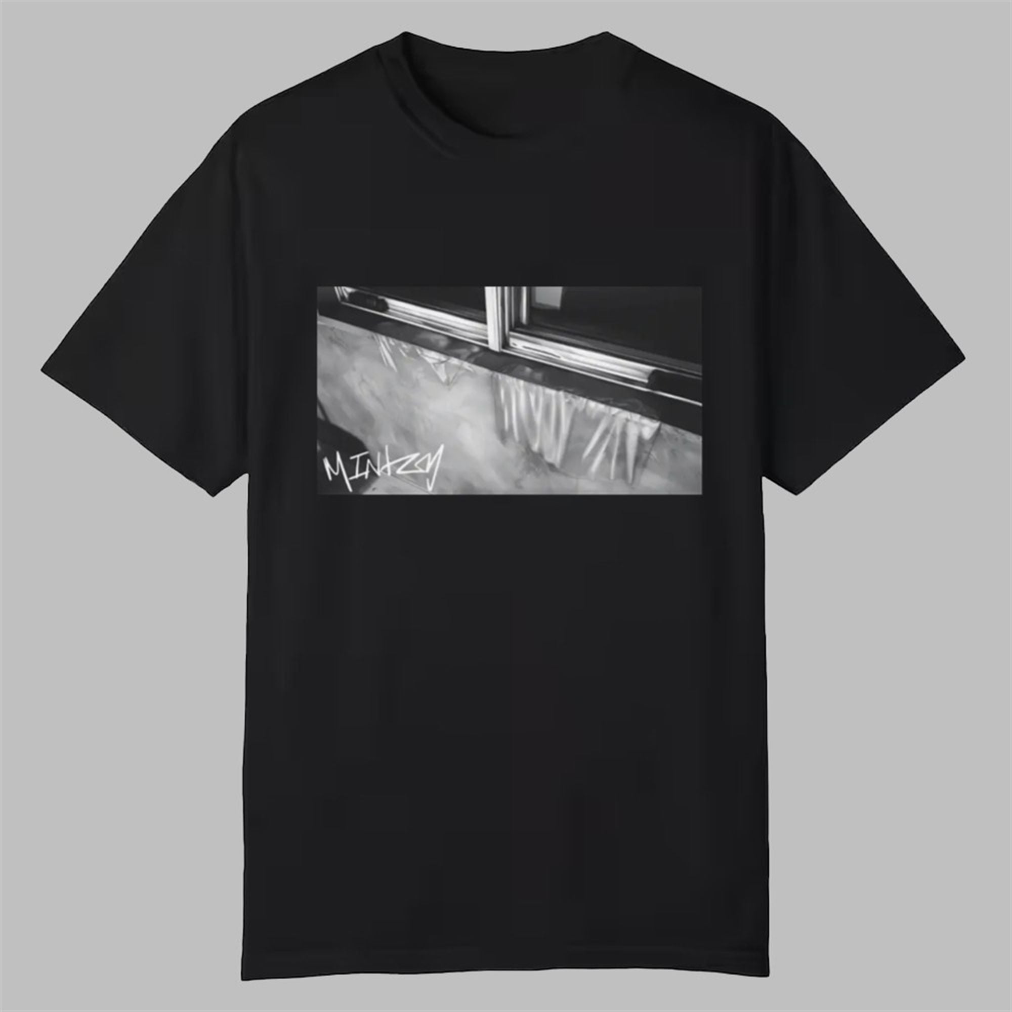 The shirt is more than just merchandise; it is a wearable tribute to one of the most unique personalities in modern media. The design centers on a stark, black-and-white photograph of a window ledge—a view that became legendary among fans. The image captures the raw, unfiltered essence of Mintzy’s world, stripped of glamour and polished production.