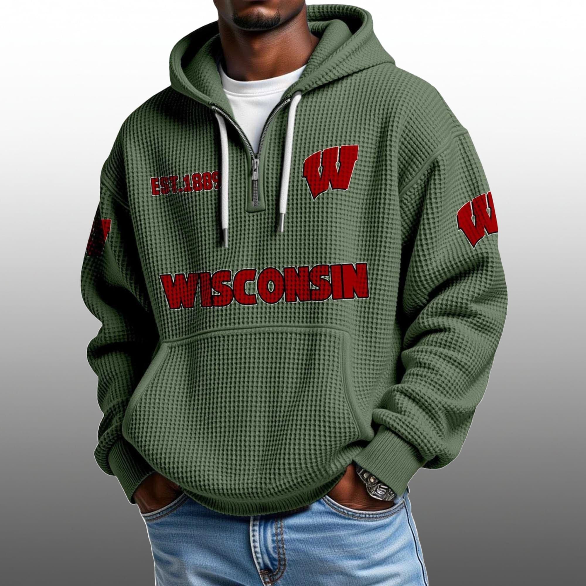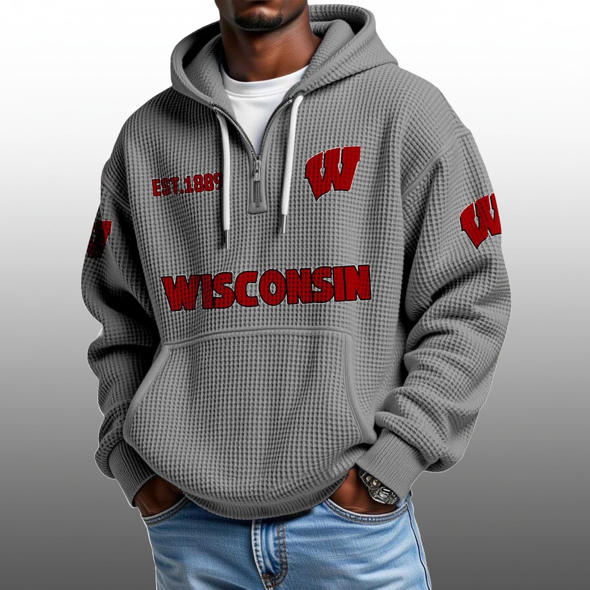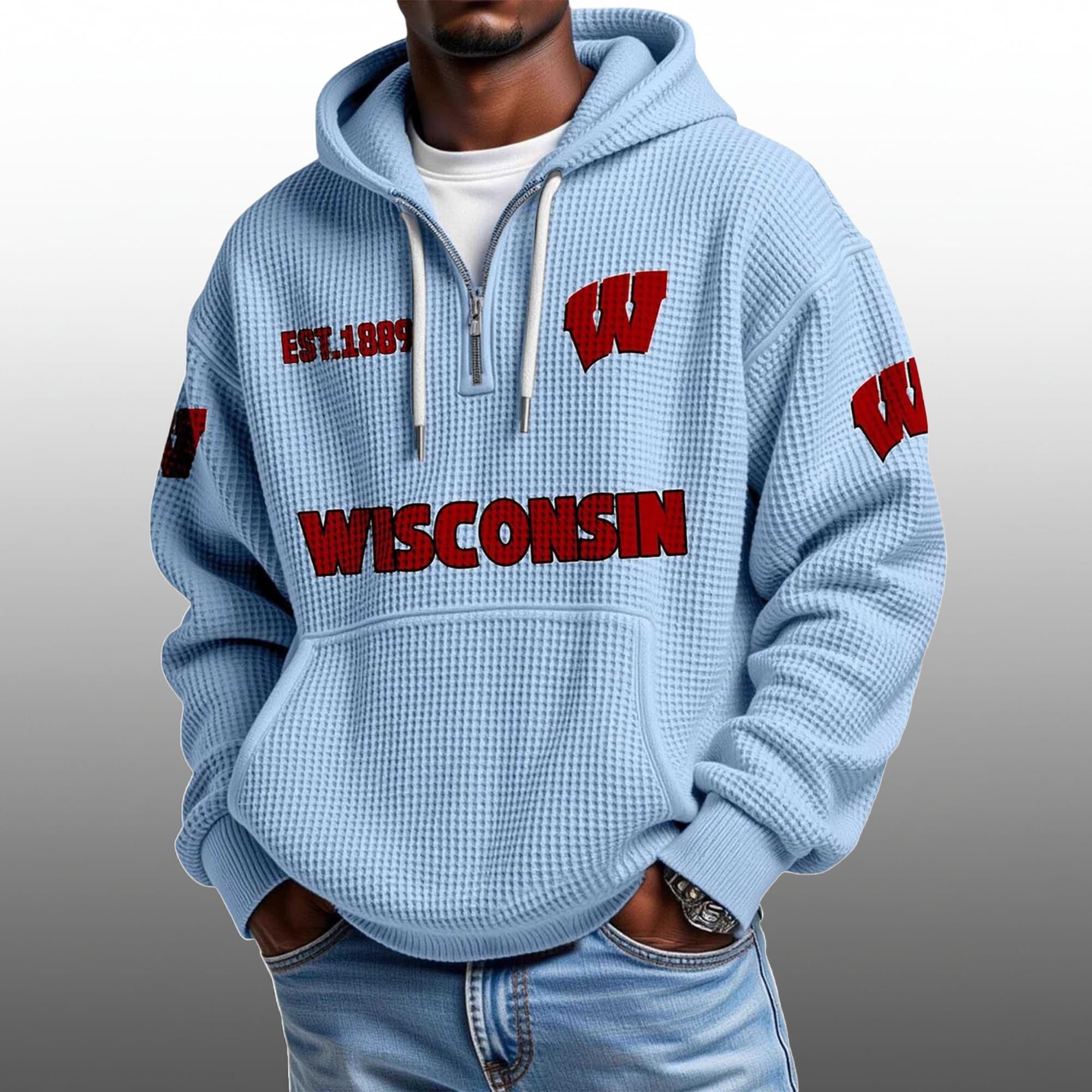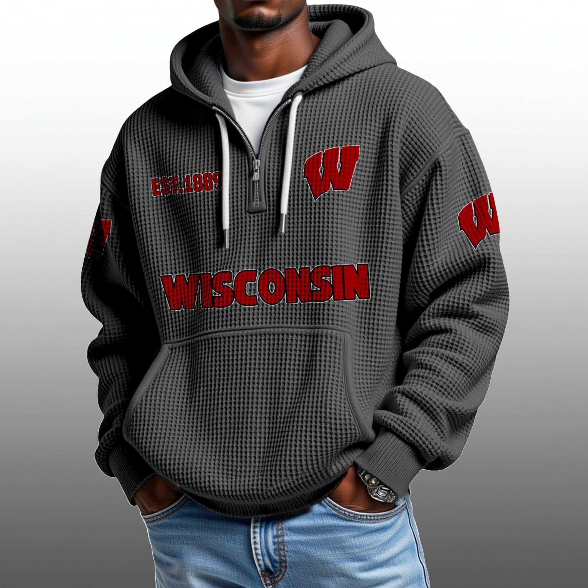2026 Wisconsin EST 1889 Half Quarter Zip Waffle Hoodie – Heritage Meets Modern Comfort