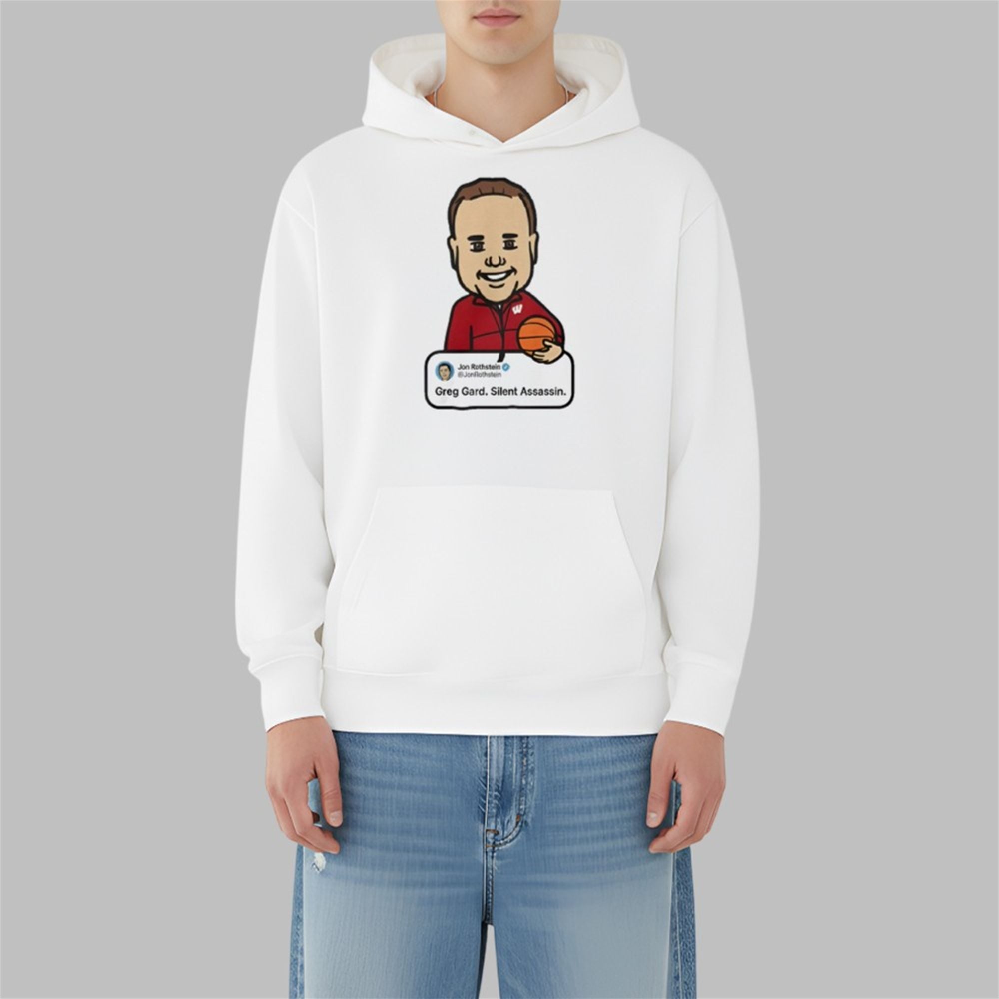 In the world of college basketball, few voices carry as much weight—or as many catchphrases—as Jon Rothstein. His designation of Wisconsin Head Coach Greg Gard as the “Silent Assassin” perfectly encapsulates the program’s identity: unassuming, methodical, and deadly effective when it counts. This premium graphic tee features a custom caricature of Greg Gard alongside the viral Rothstein tweet “Greg Gard Silent Assassin”, creating a must-have piece of apparel for the 2025-2026 season.