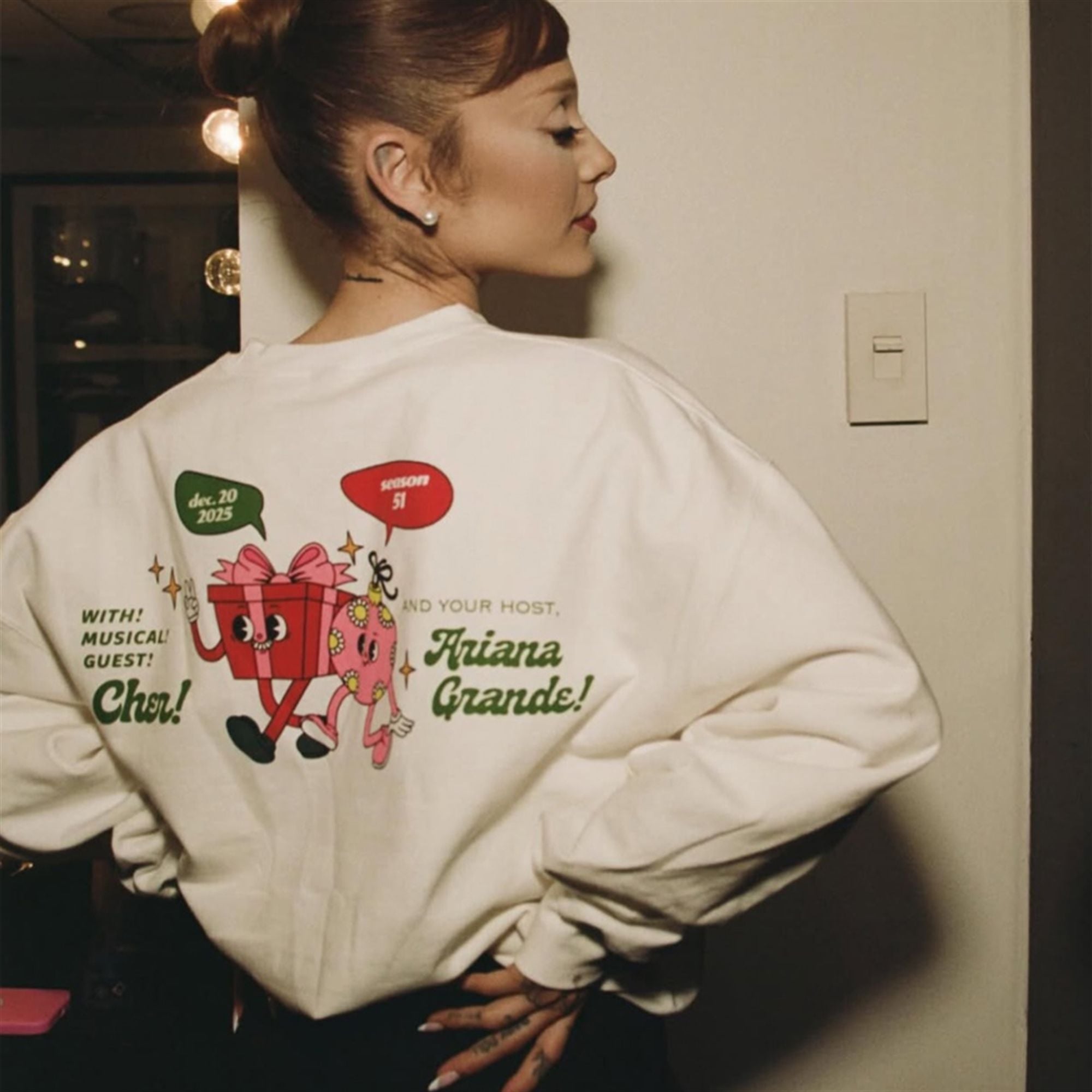 Get ready for the most anticipated television event of the 2025 holiday season with this Ariana Grande x Cher SNL Christmas Sweatshirt. Celebrating the historic Saturday Night Live Season 51 holiday episode on December 20, 2025, this crewneck commemorates the night pop royalty takes over Studio 8H.