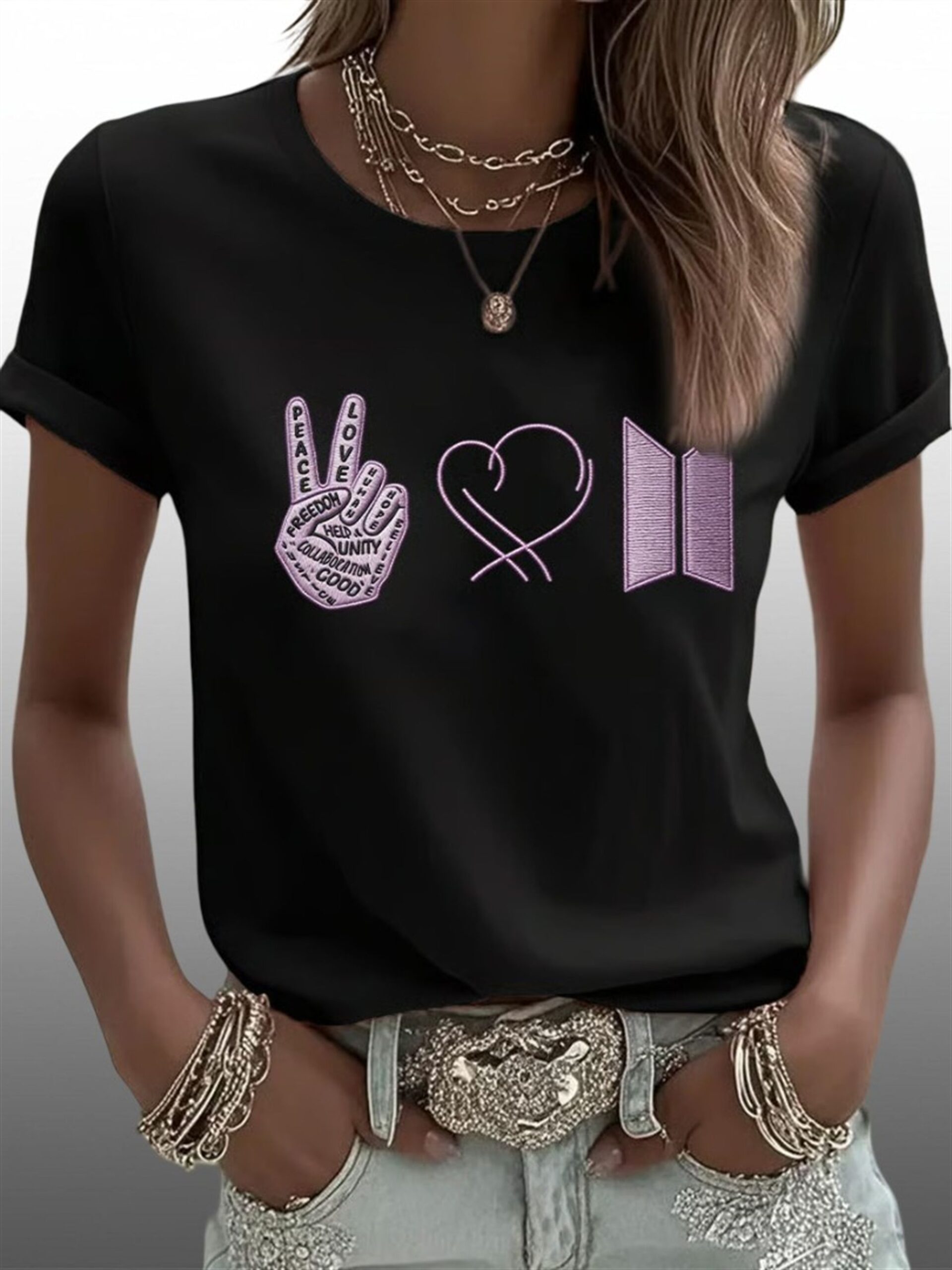 This specific design exploded in popularity across TikTok and Twitter immediately following the 2026 Tour announcement because it perfectly visualized the fandom’s “OT7” reunion sentiment. Fans resonated with the “Peace, Love, BTS” narrative sequence, interpreting the graphics as a timeline of their journey: from spreading positive messages, to loving each other through the wait, to finally opening the door to the future together. It became the “uniform” for the comeback, symbolizing that the wait was worth it.