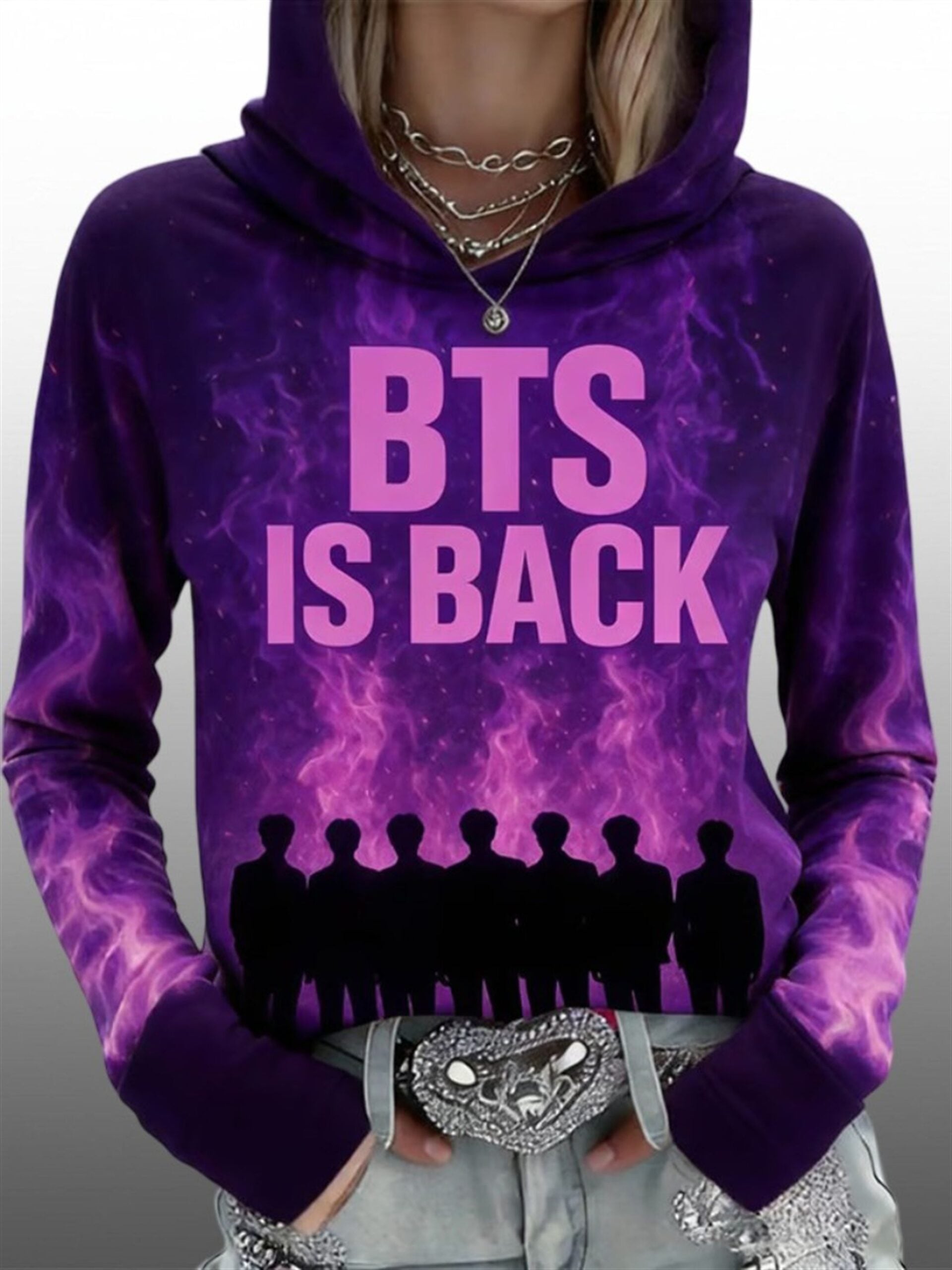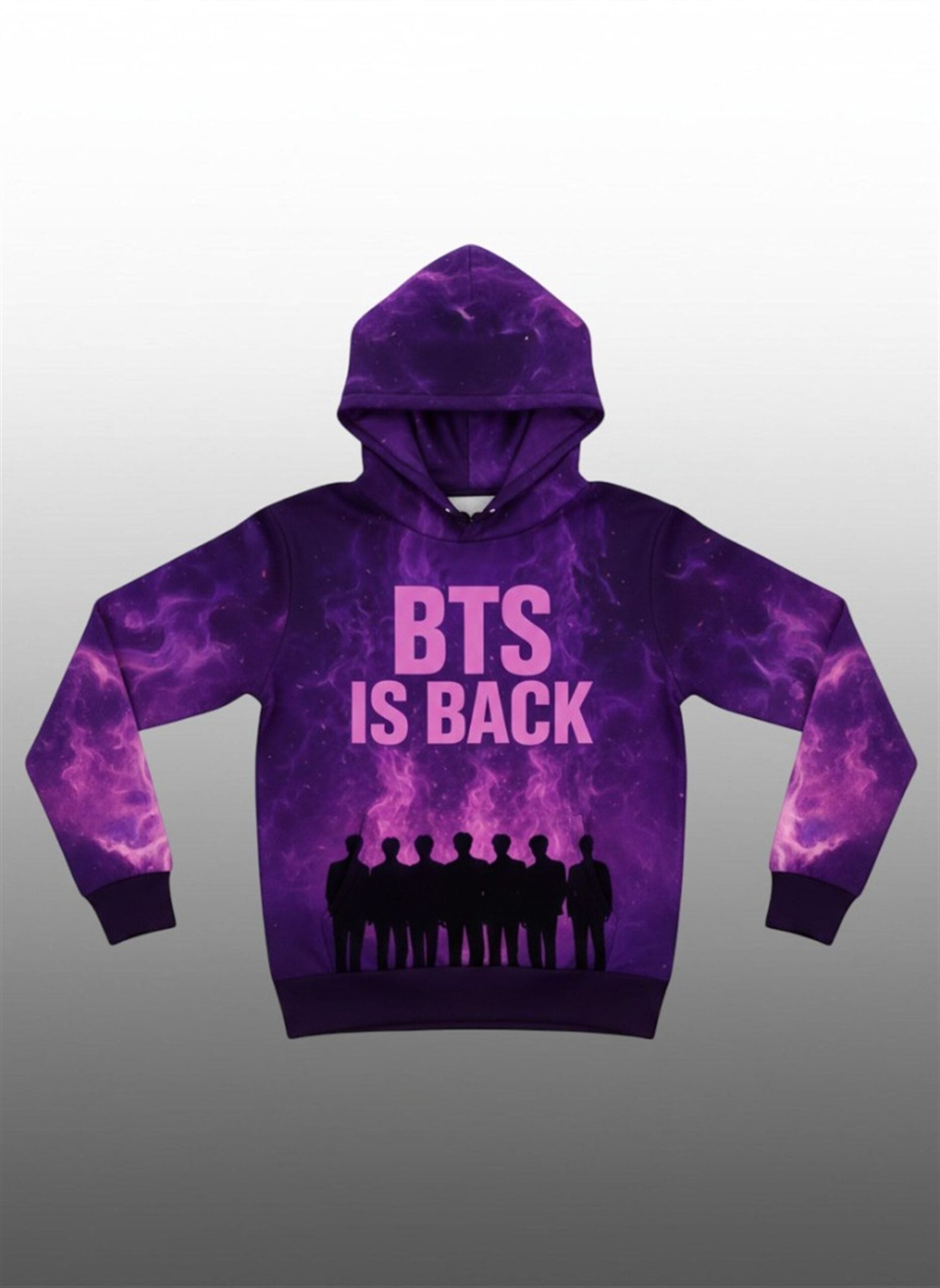 The wait is finally over, and the kings of K-Pop have returned to reclaim their throne. The Women’s 2026 BTS Is Back Printed Hoodie is more than just merchandise; it is a commemorative flag for the “Purple Ocean” that has waited faithfully through the hiatus