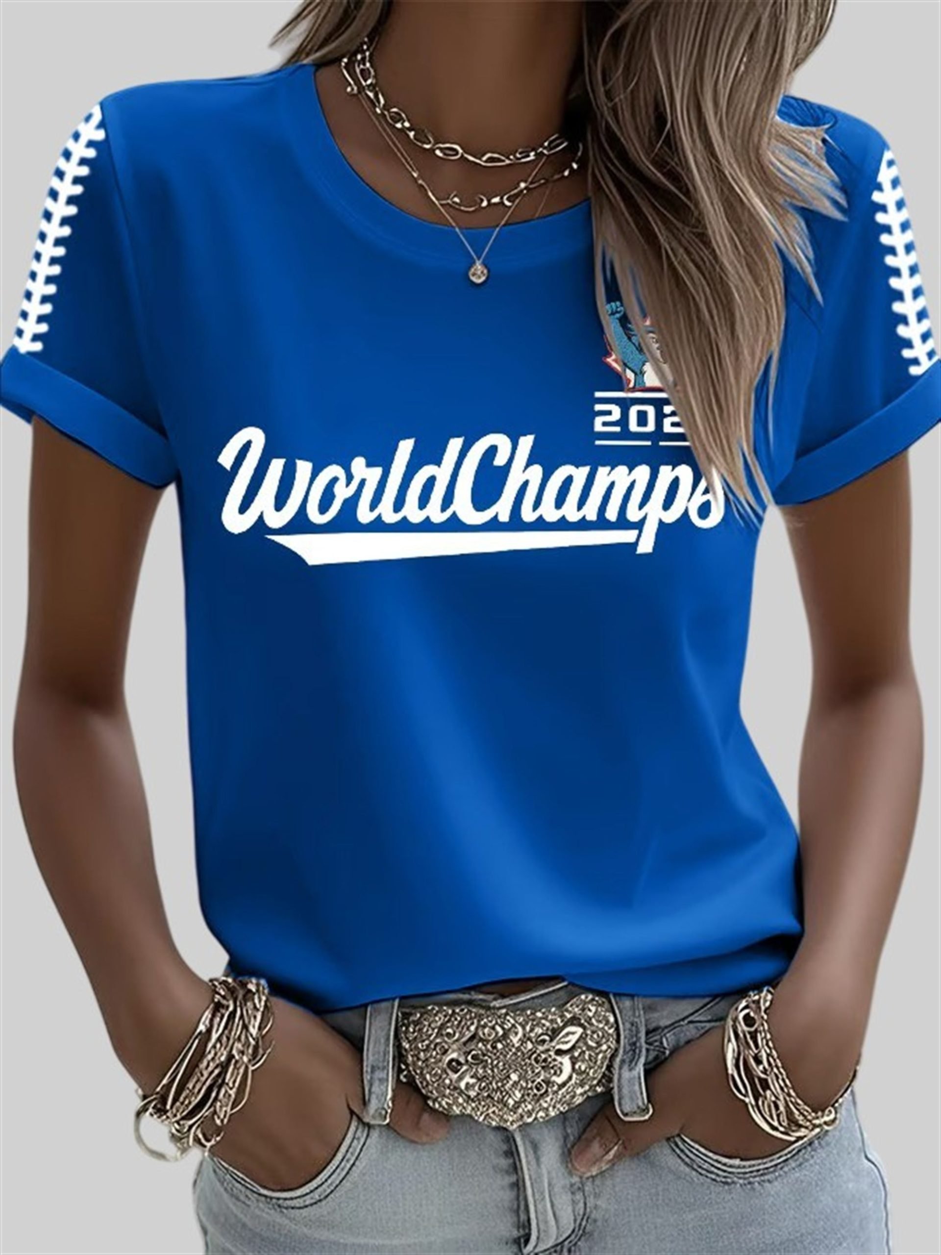 Women’s Blue Jays 2025 World Champs Printed Round Neck T-Shirt | Celebrate in Style