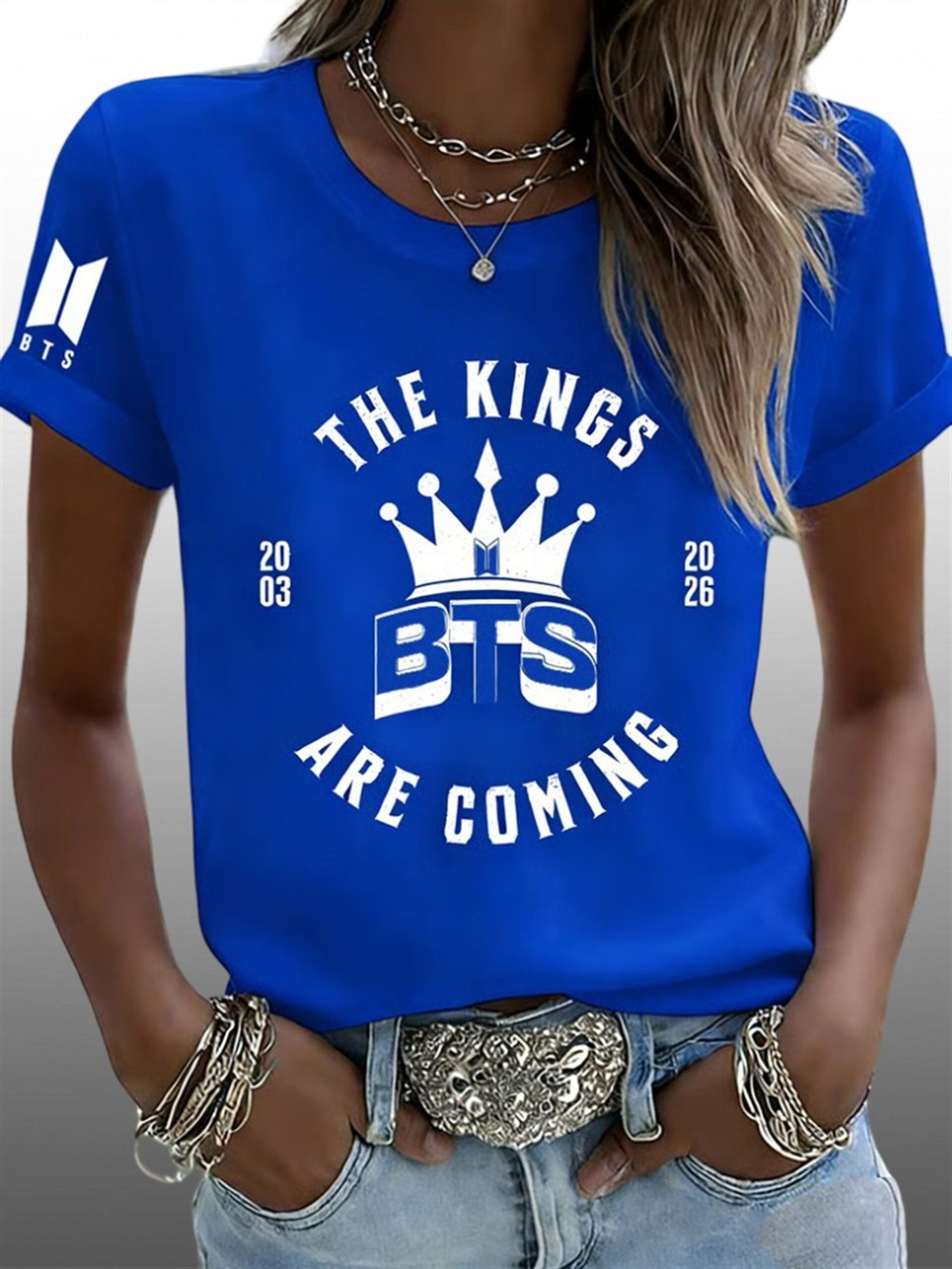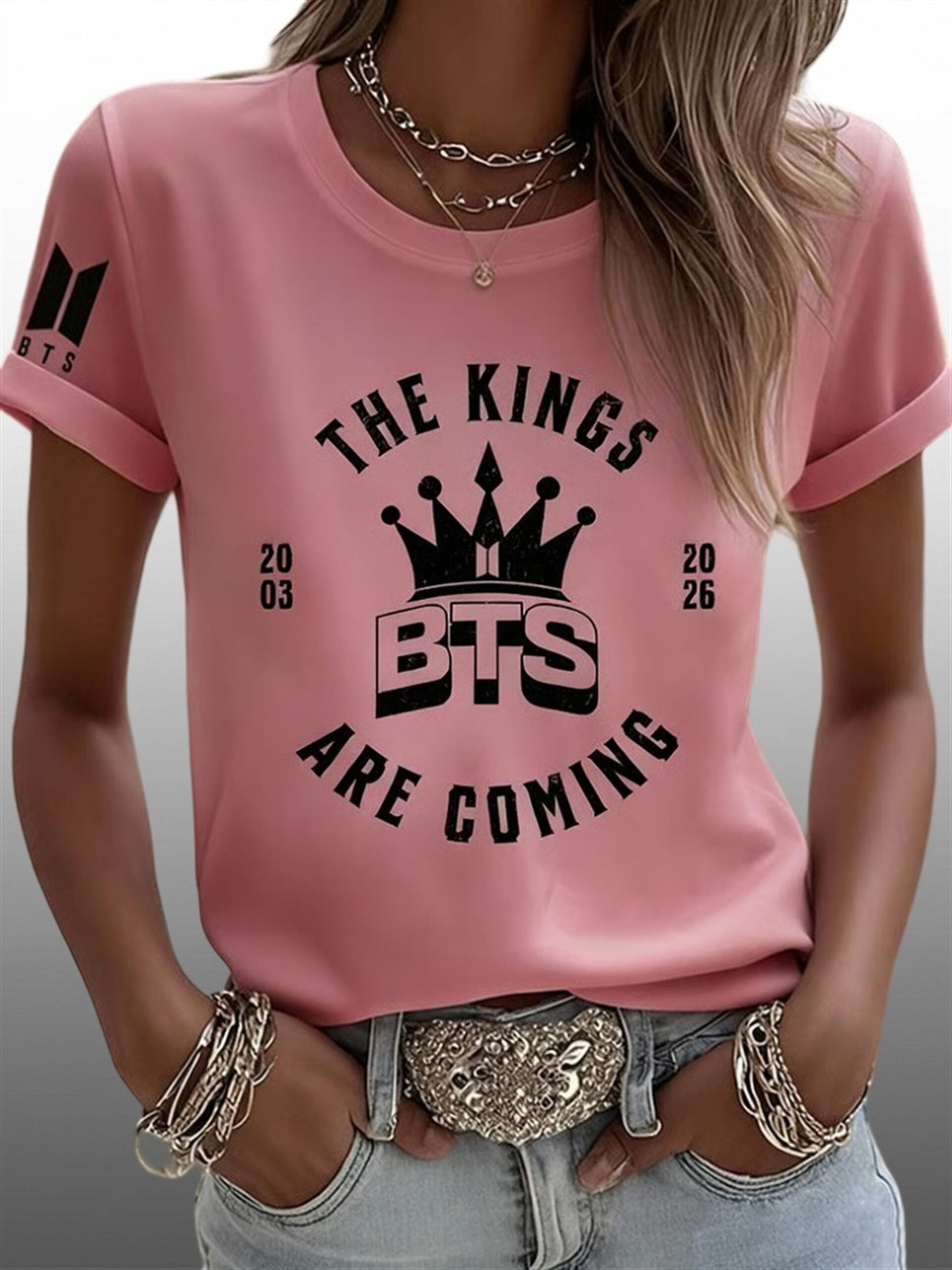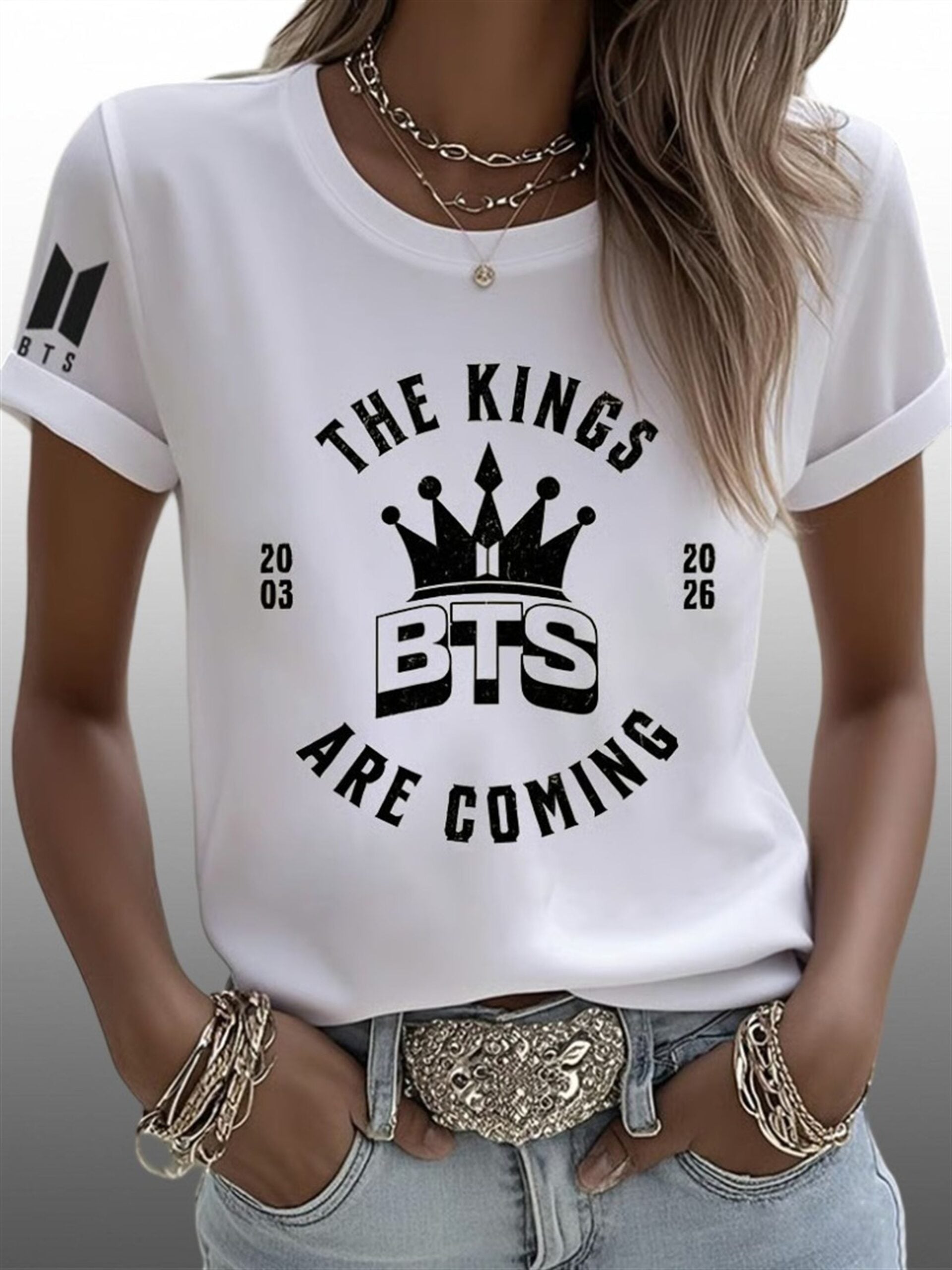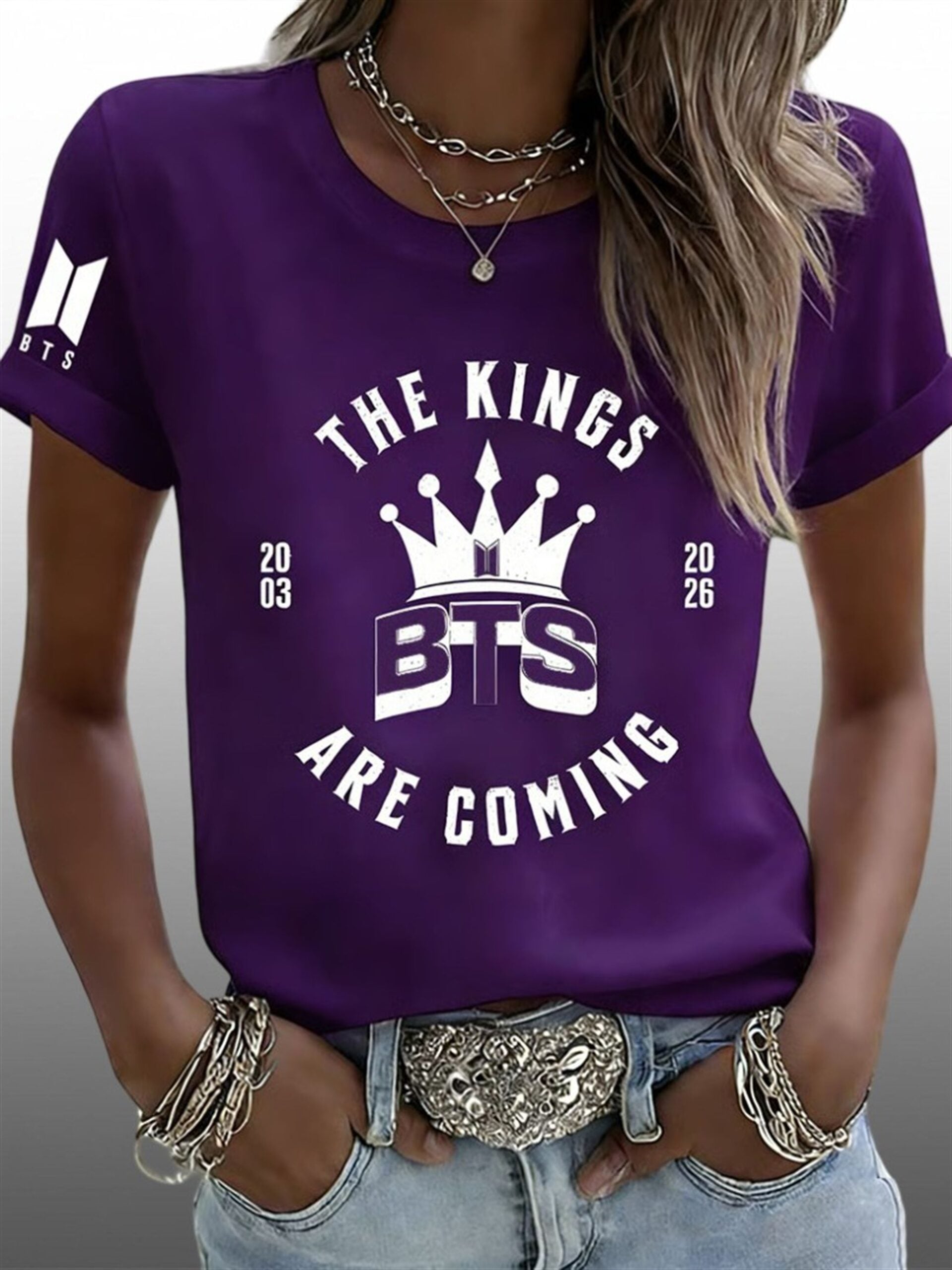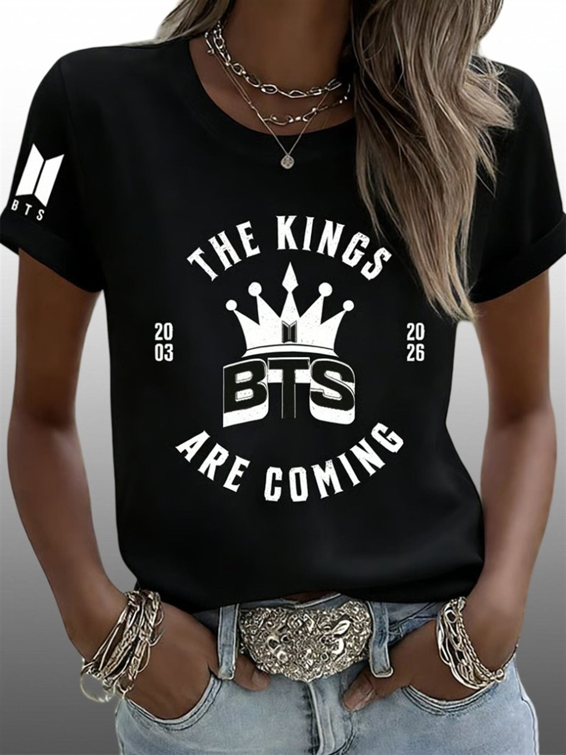 Elevate your concert fit with the viral Women’s Bts The Kings Are Coming 2026 Print T-Shirt, the definitive streetwear look for the 2026 comeback season. Featuring a high-contrast varsity design and the iconic crown emblem, this top serves as a visible badge of loyalty for fans ready to celebrate the full group’s return.