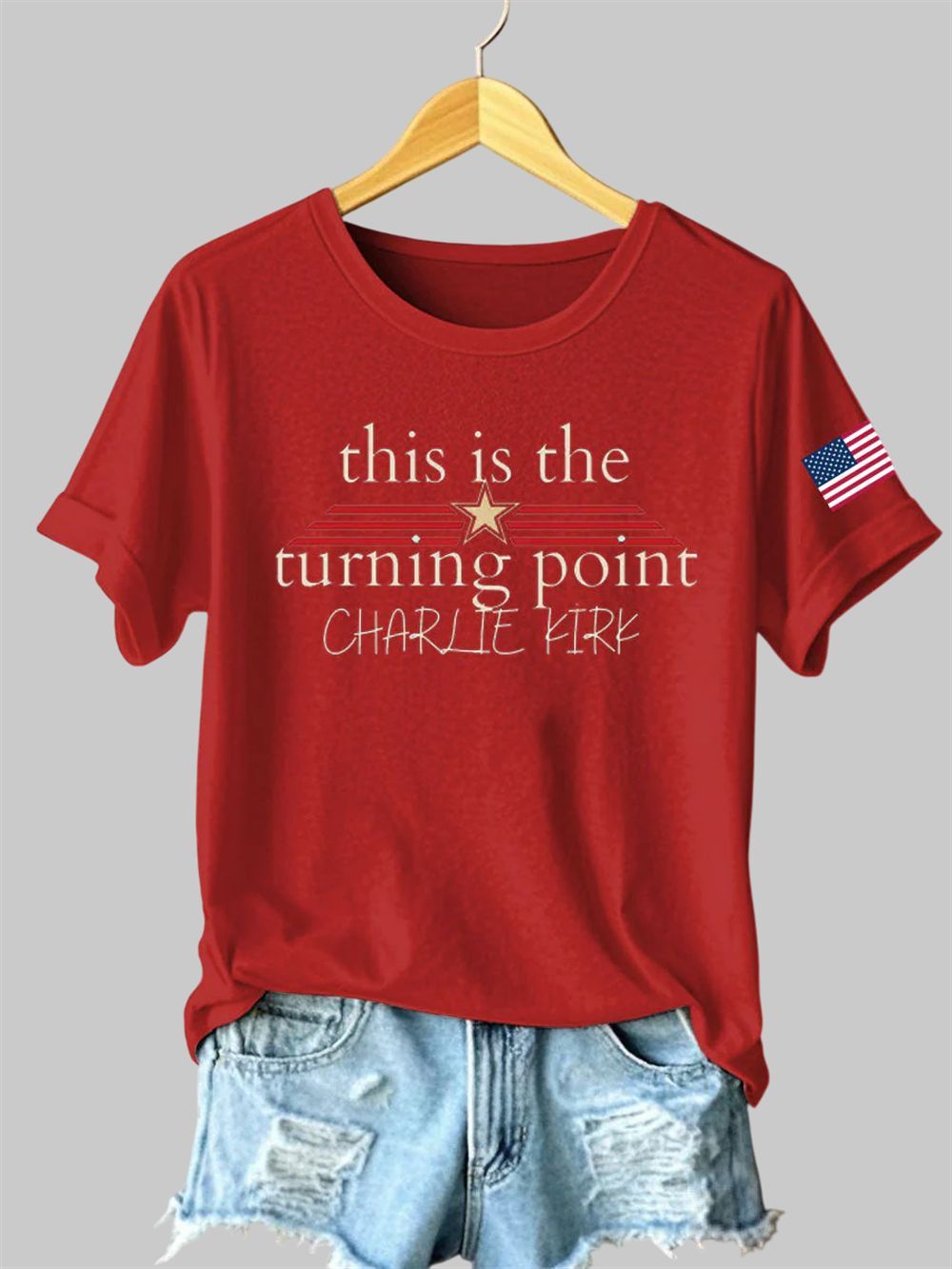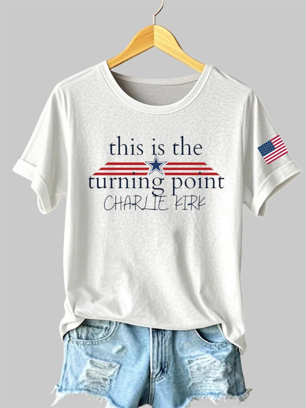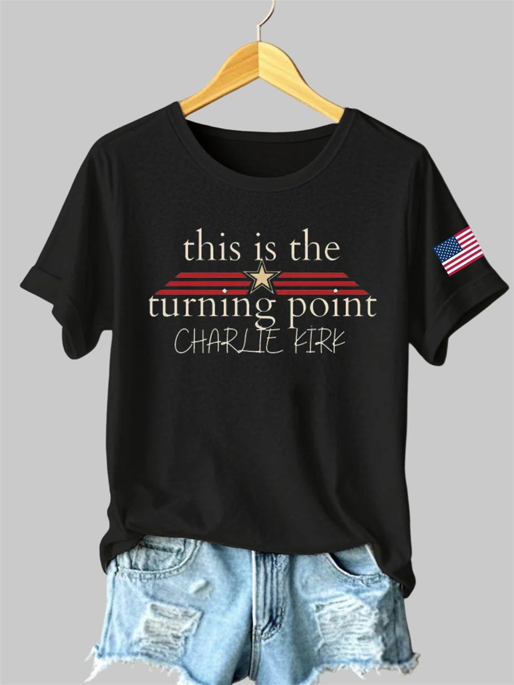 This isn’t just a t-shirt; it’s a declaration. The Women’s Charlie Kirk Turning Point Iron On Sleeve T-Shirt, inspired by the influential voice of Charlie Kirk, is a powerful way to express your commitment to conservative values and your hope for the future of America. The elegant, star-adorned typography is both eye-catching and sophisticated, ensuring your message is seen and respected. The design is a nod to a pivotal moment in our nation’s history and a call to be an active participant in shaping its future. The inclusion of the iconic American flag on the sleeve is a proud display of your patriotism, a symbol of the enduring spirit of liberty and the principles upon which this country was founded.