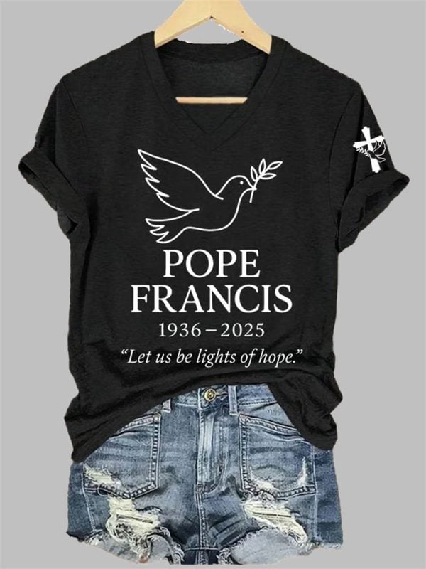 Women’s Pope Francis 1936 – 2025 Let Us Be Lights Of Hope Printed T-shirt – Inspiring Hope