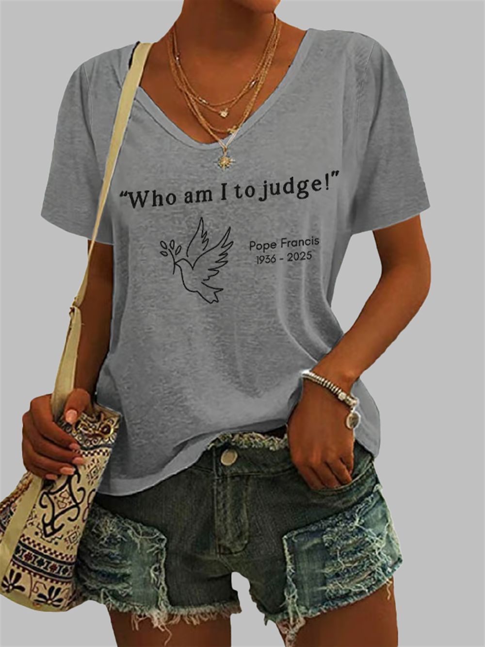 Women’s Who am I to Judge Pope Francis Print V-Neck T-Shirt – Embrace Compassion