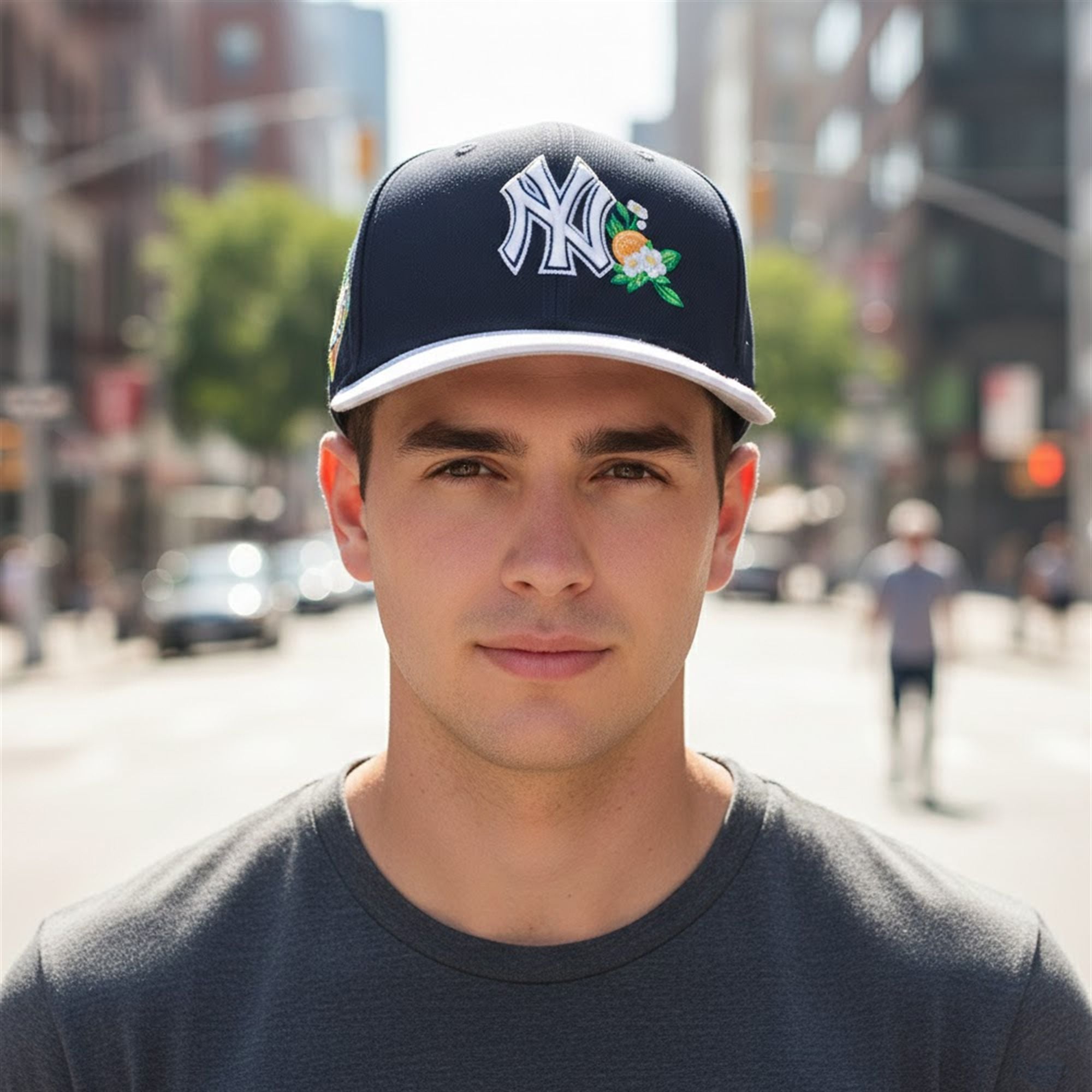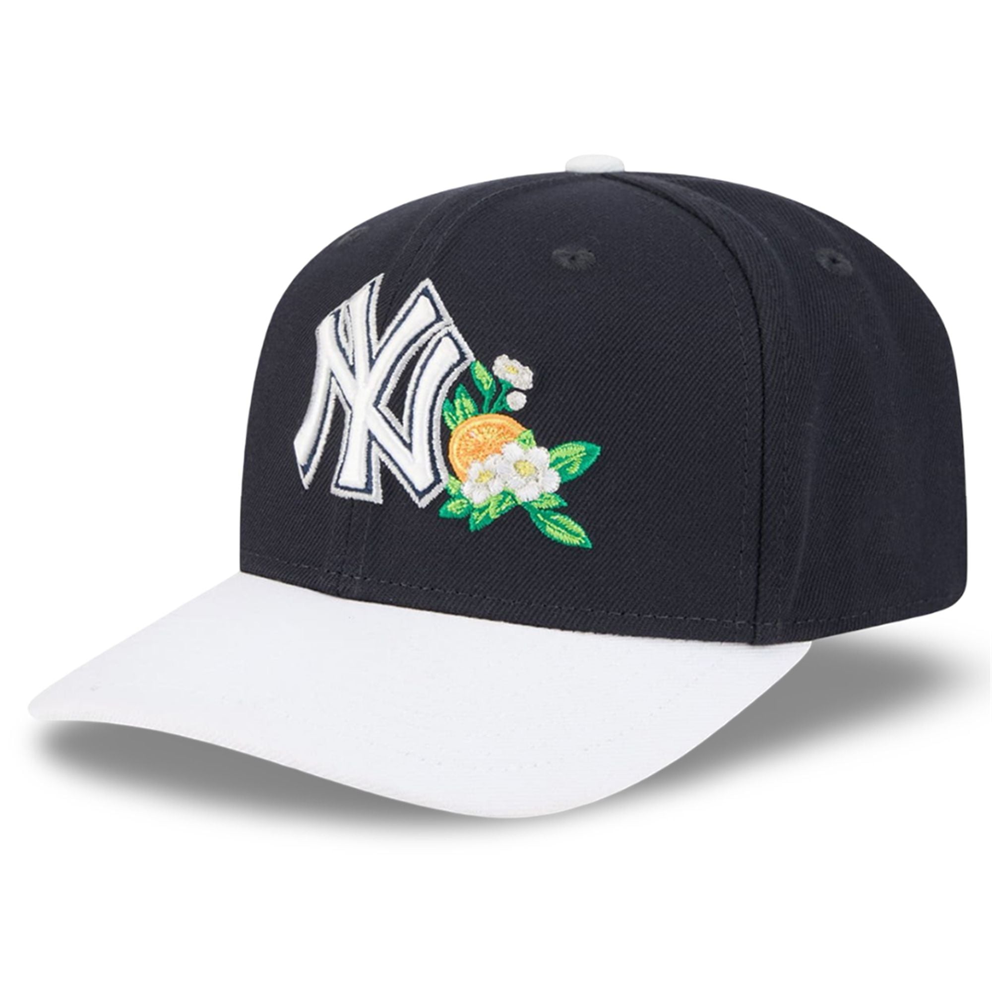 Distinctive Floral : The classic white “NY” logo is reimagined with a stunning, high-definition featuring Florida oranges and blooming white blossoms. This artistic detail pays homage to the citrus groves of the Grapefruit League, adding a splash of organic color that pops against the midnight navy crown.