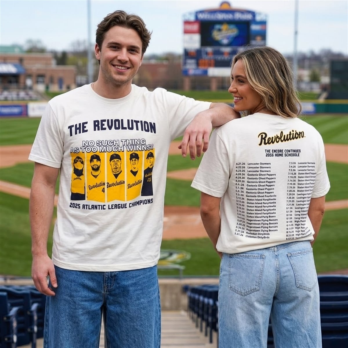 Celebrate a historic milestone in Atlantic League baseball with the York Revolution 2025 Championship Concert T-Shirt 2026 Giveaway. Designed to honor the team’s spectacular run to the top, this 2026 giveaway item brilliantly merges the triumphant spirit of a championship victory with the aesthetic of a rock band’s world tour.