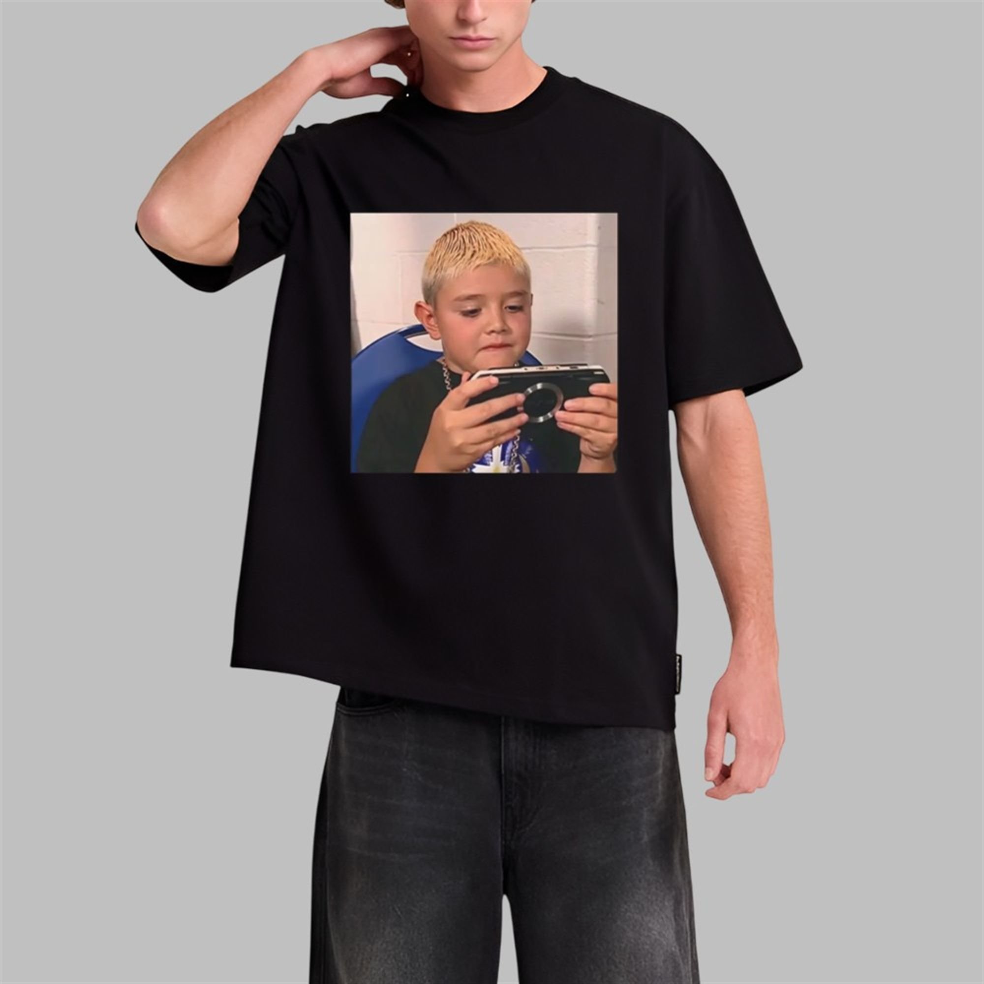 Whether you call it the “Young Jedi,” the “Focused Gamer Kid,” or by its rightful name, this graphic tee is a tribute to an era and a mood. It’s a nod to the aesthetic, a celebration of gaming history, and a humorous statement piece all in one. The high-resolution graphic is expertly printed to capture the amusingly serious expression and the nostalgic details of the early 2000s, ensuring it won’t fade or crack after just a few washes.